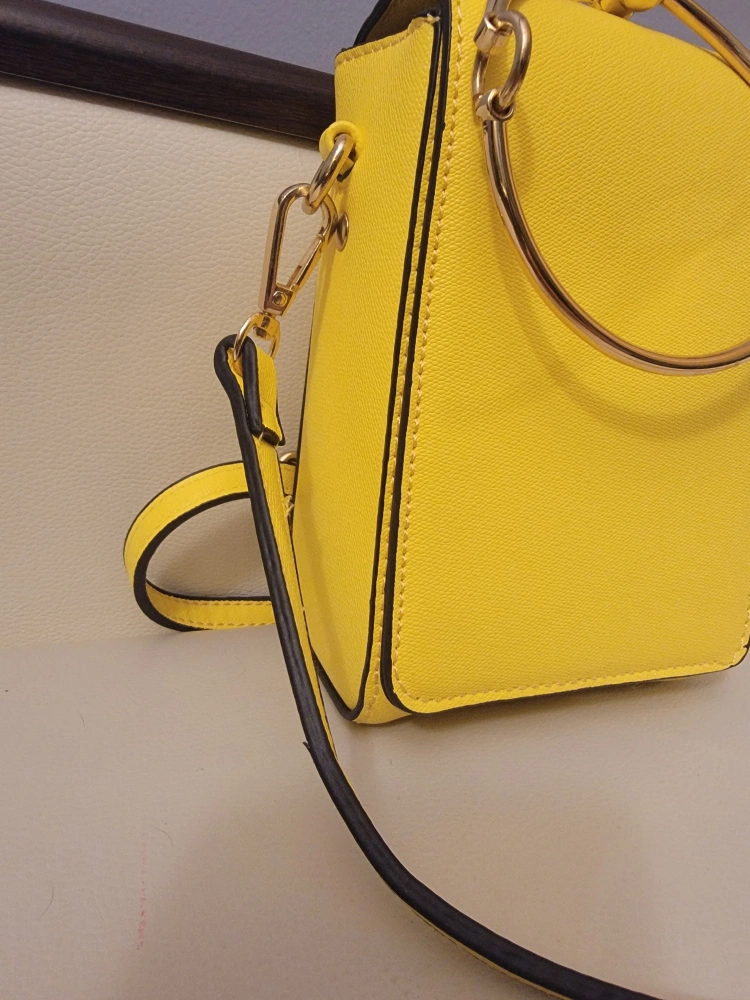 1000+Chloe style crossbodybag. Features a gold-tone handle and a detachable shoulder strap. The bag has black trim and a patterned interior. This bag is perfect for adding a pop of colour to any outfit, as it will make you feel stylish and put together.