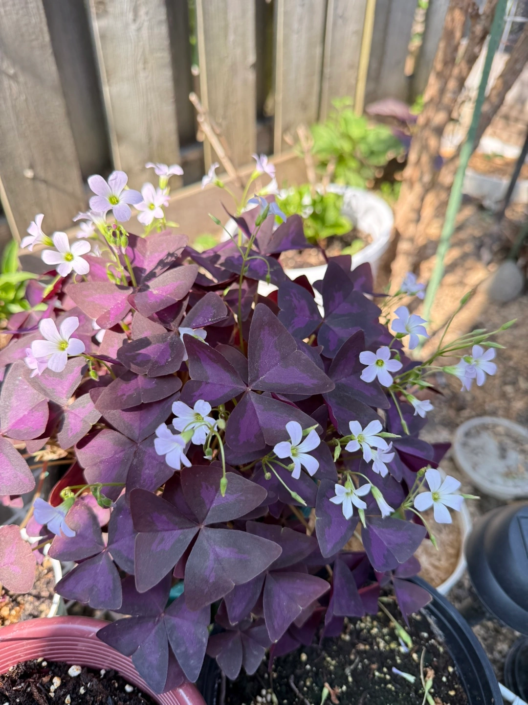 A lovely purple shamrock plant. It has eye-catching deep purple, tri-lobed leaves. These plants can bring a great sense of tranquility to any space.