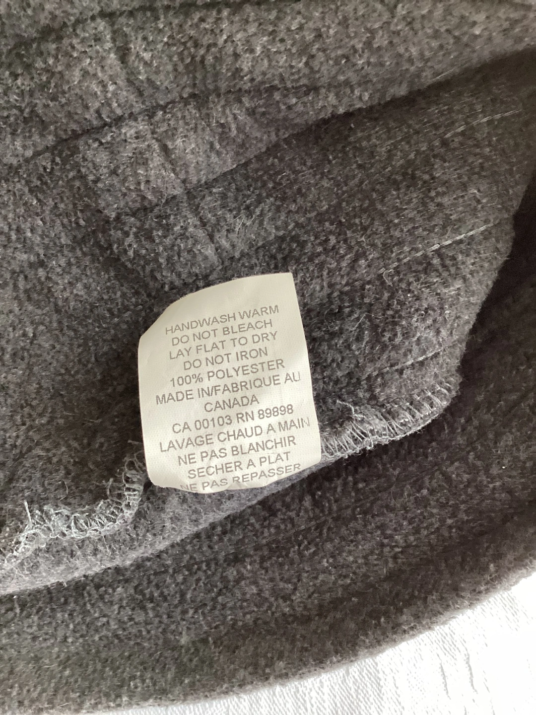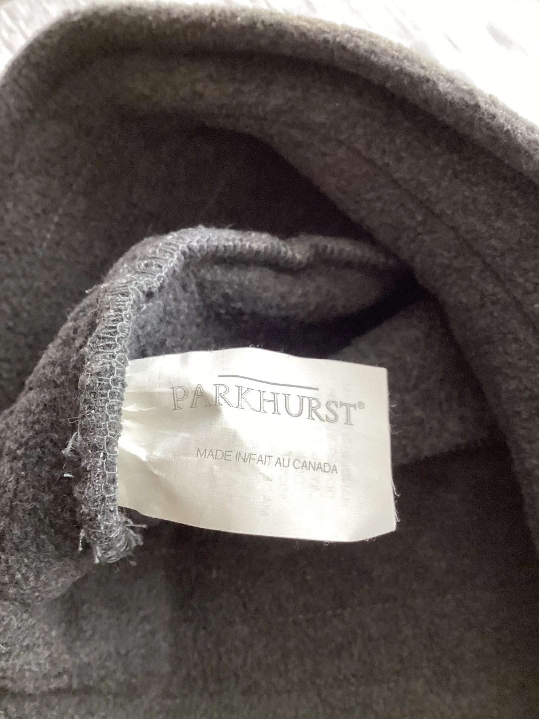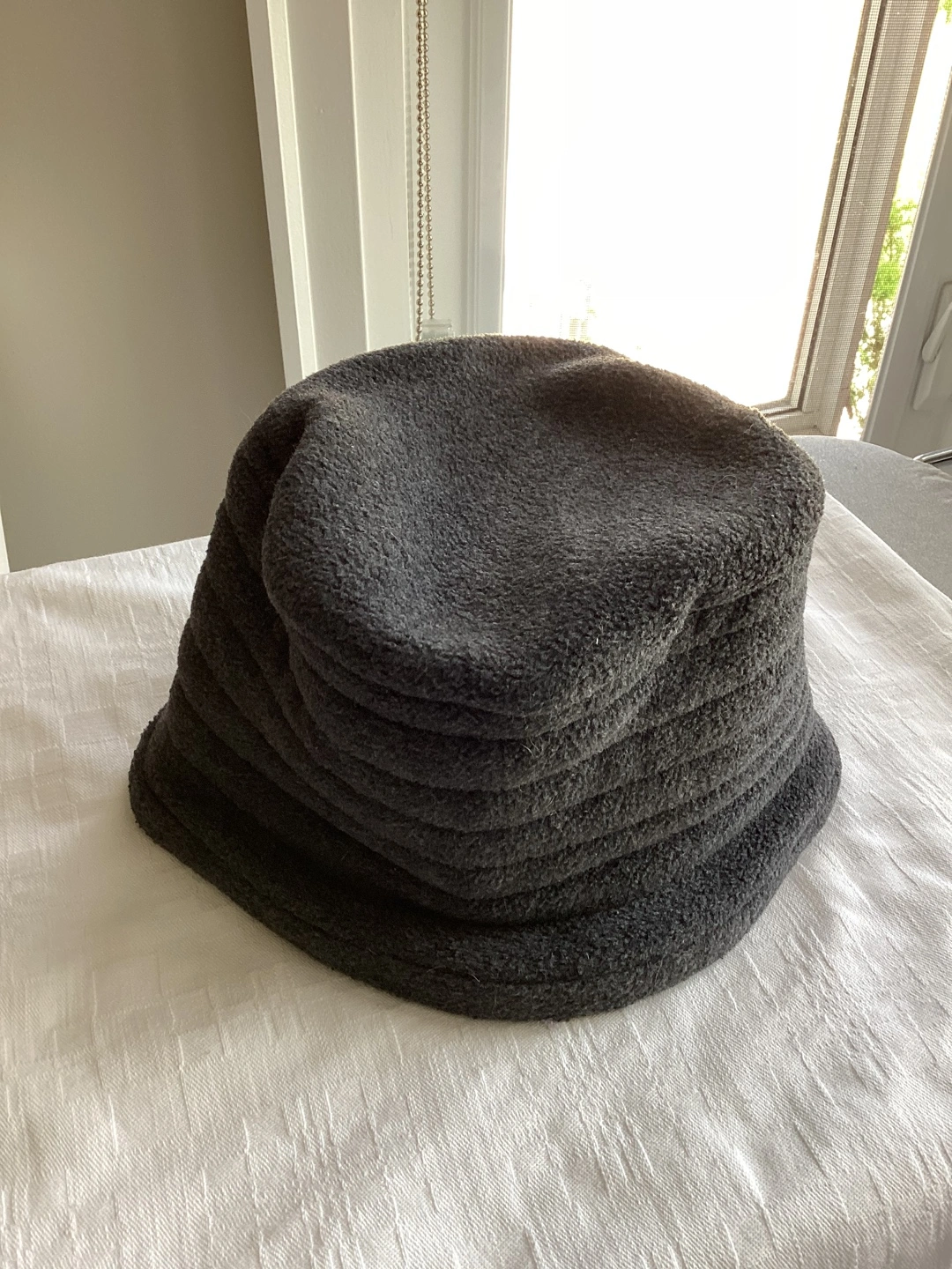 207Parkhurst Winter Bucket Hat, 100 percent polyester fully washable, has some kind of wire around the bottom edge which allows it to keep its shape, neutral grey colour, $10 or best offer.