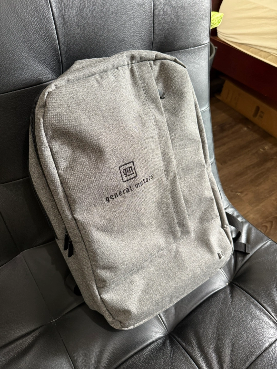 Brand new grey backpack. Black straps on the back. Features a top handle and a front pocket. It's a great item to help you organise your belongings.