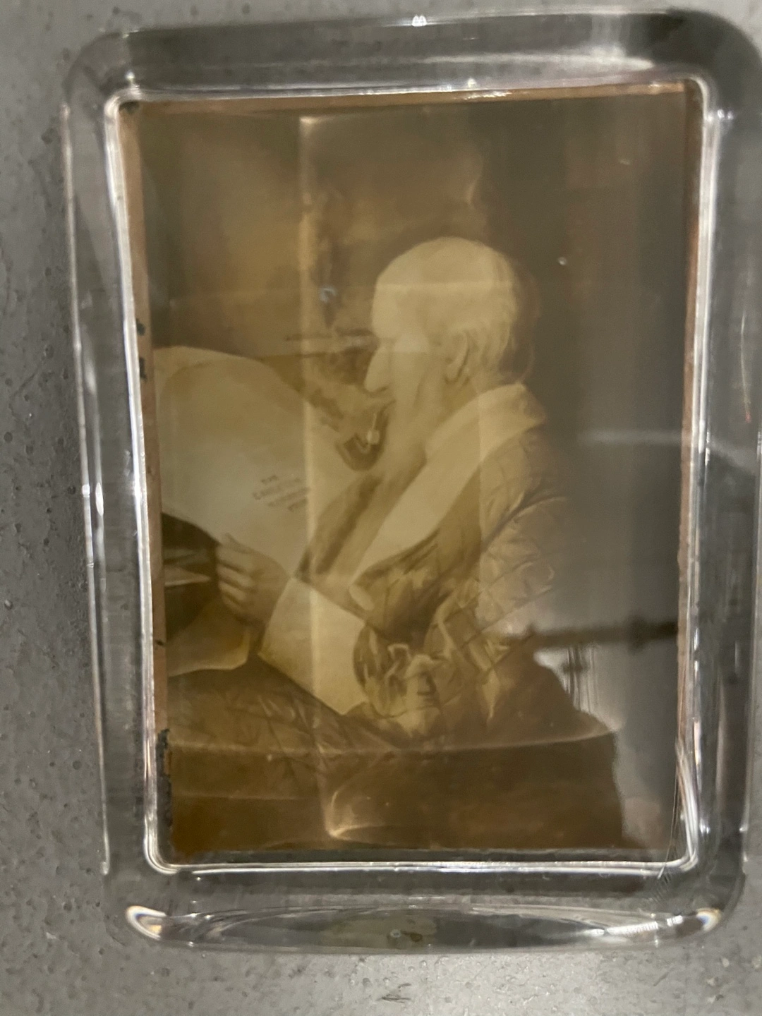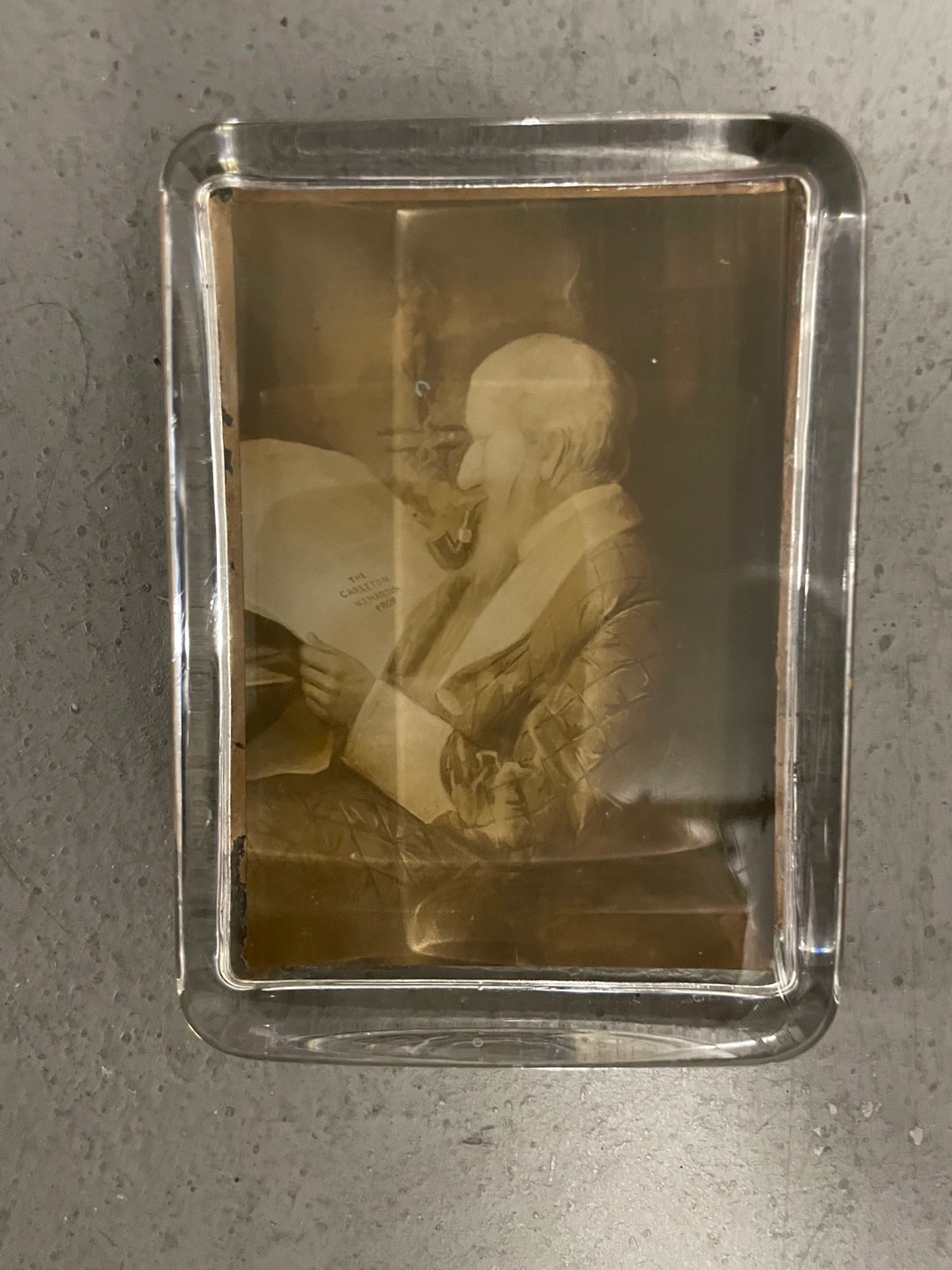 Antique Portrait Photo in Glass Frame PAPER WEIGHT