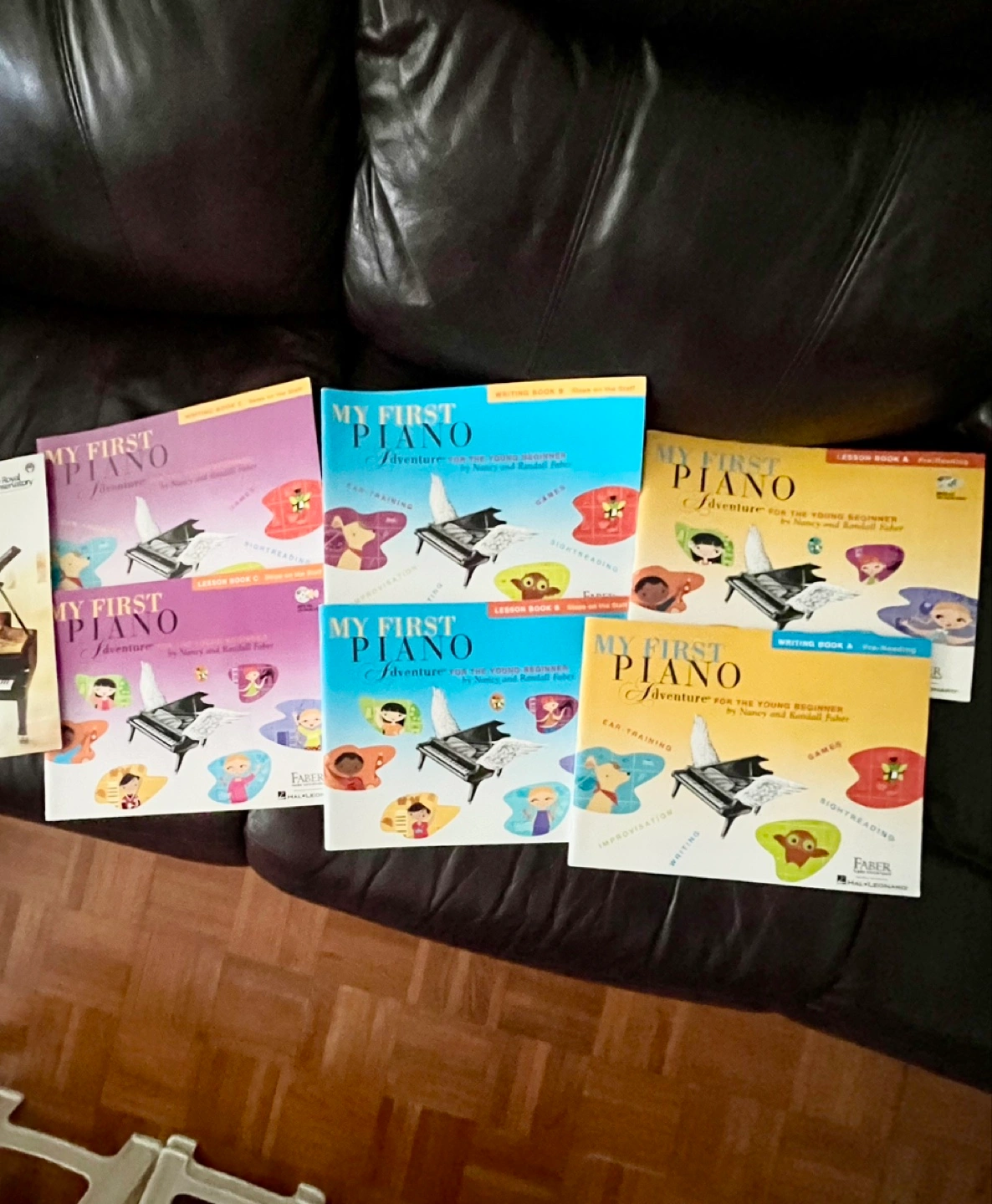 Several books displayed. They are designed for young beginners. These books can encourage a calm, mindful learning experience for your child.