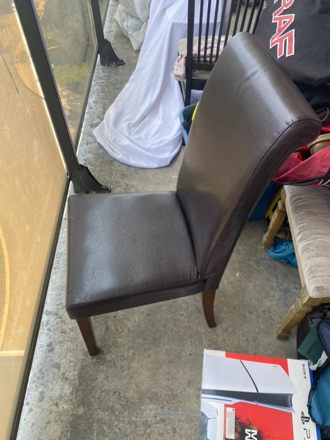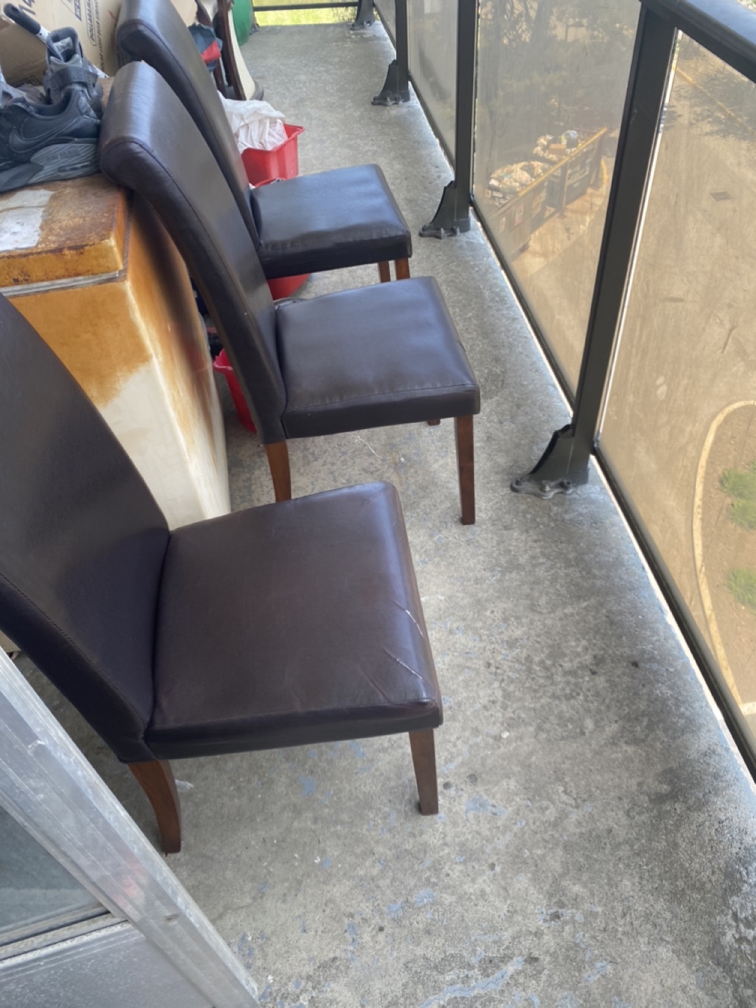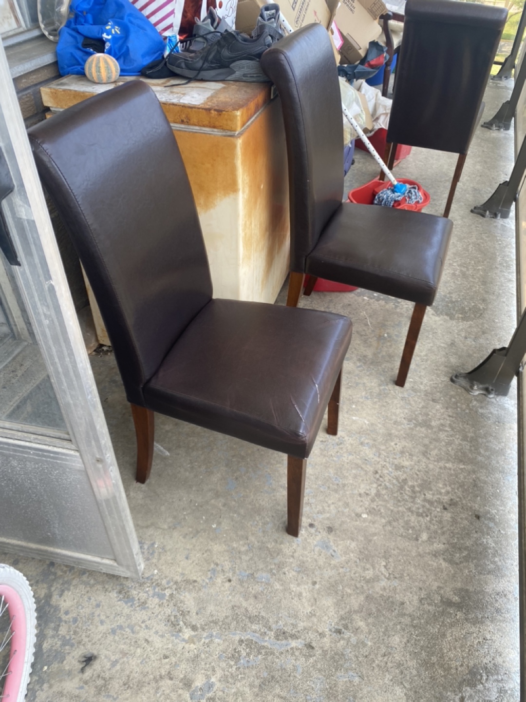 Here are some dining chairs. They are dark brown. Wooden legs. Padded seats and backs. They would look great in your dining room.