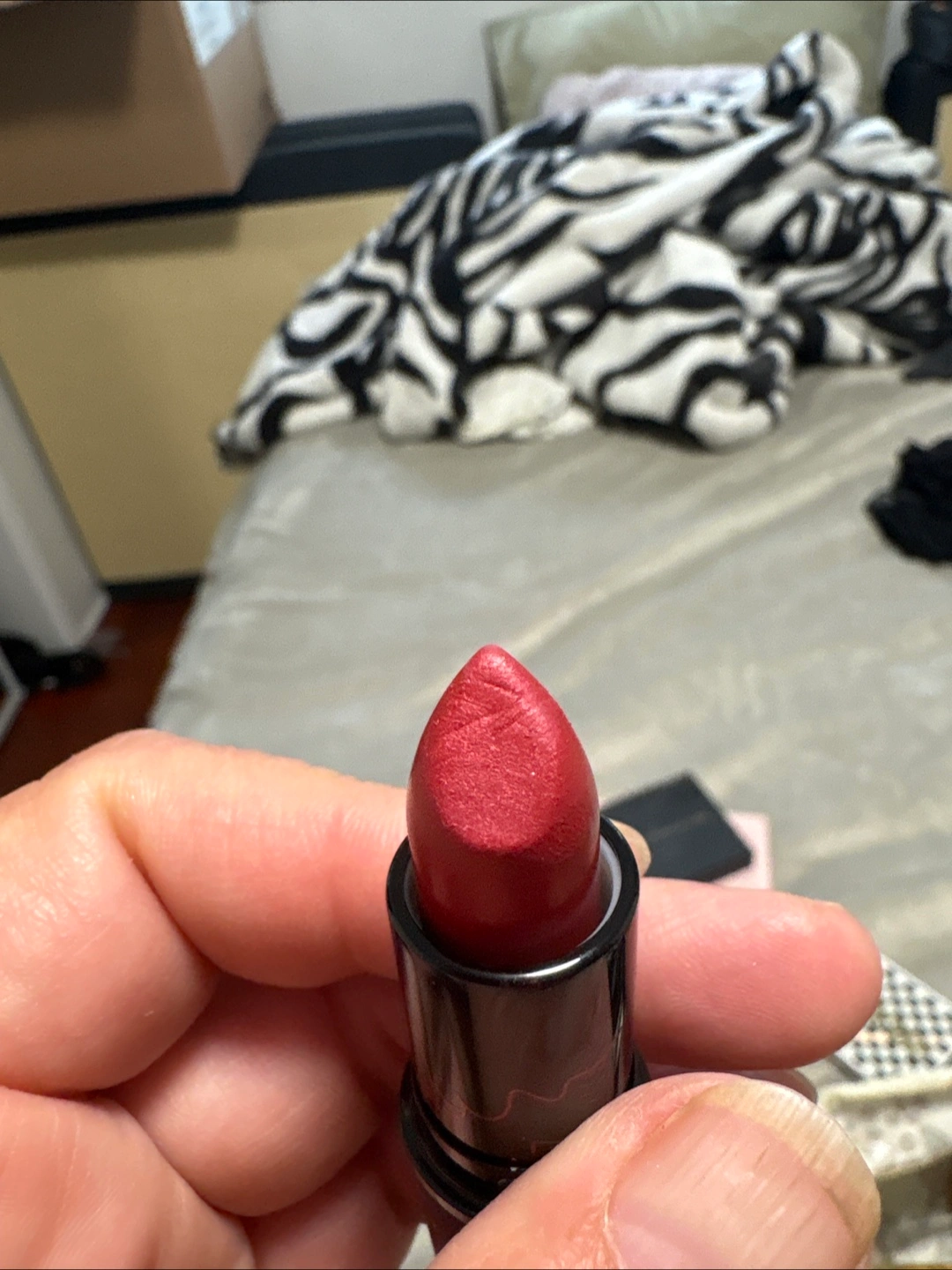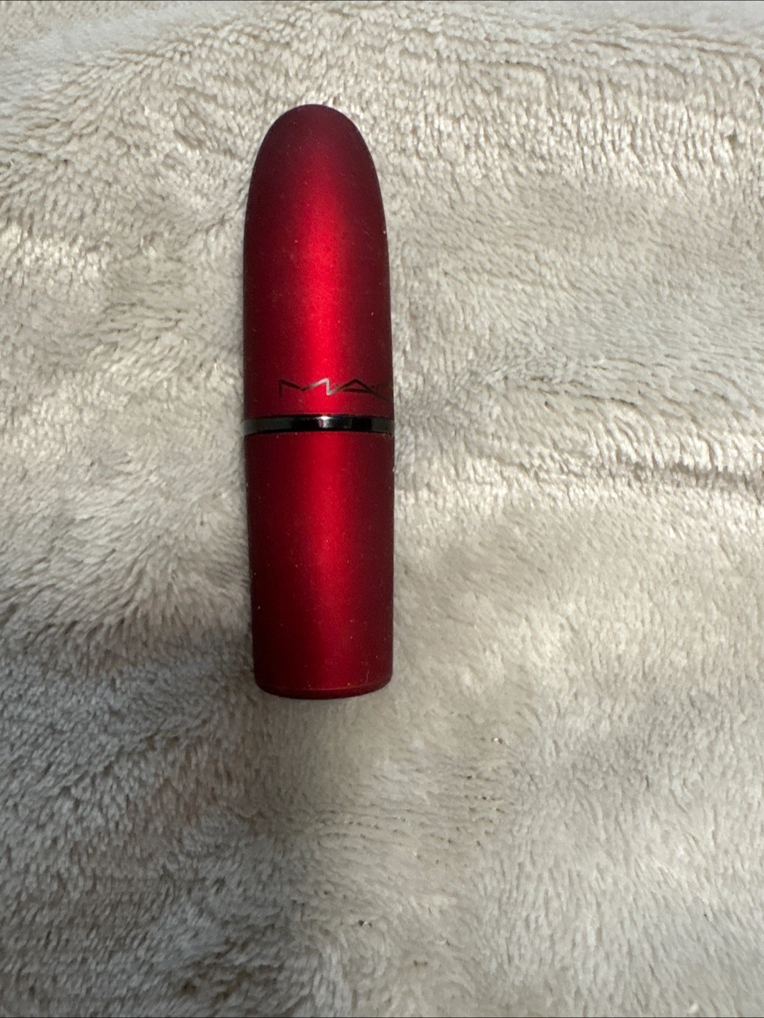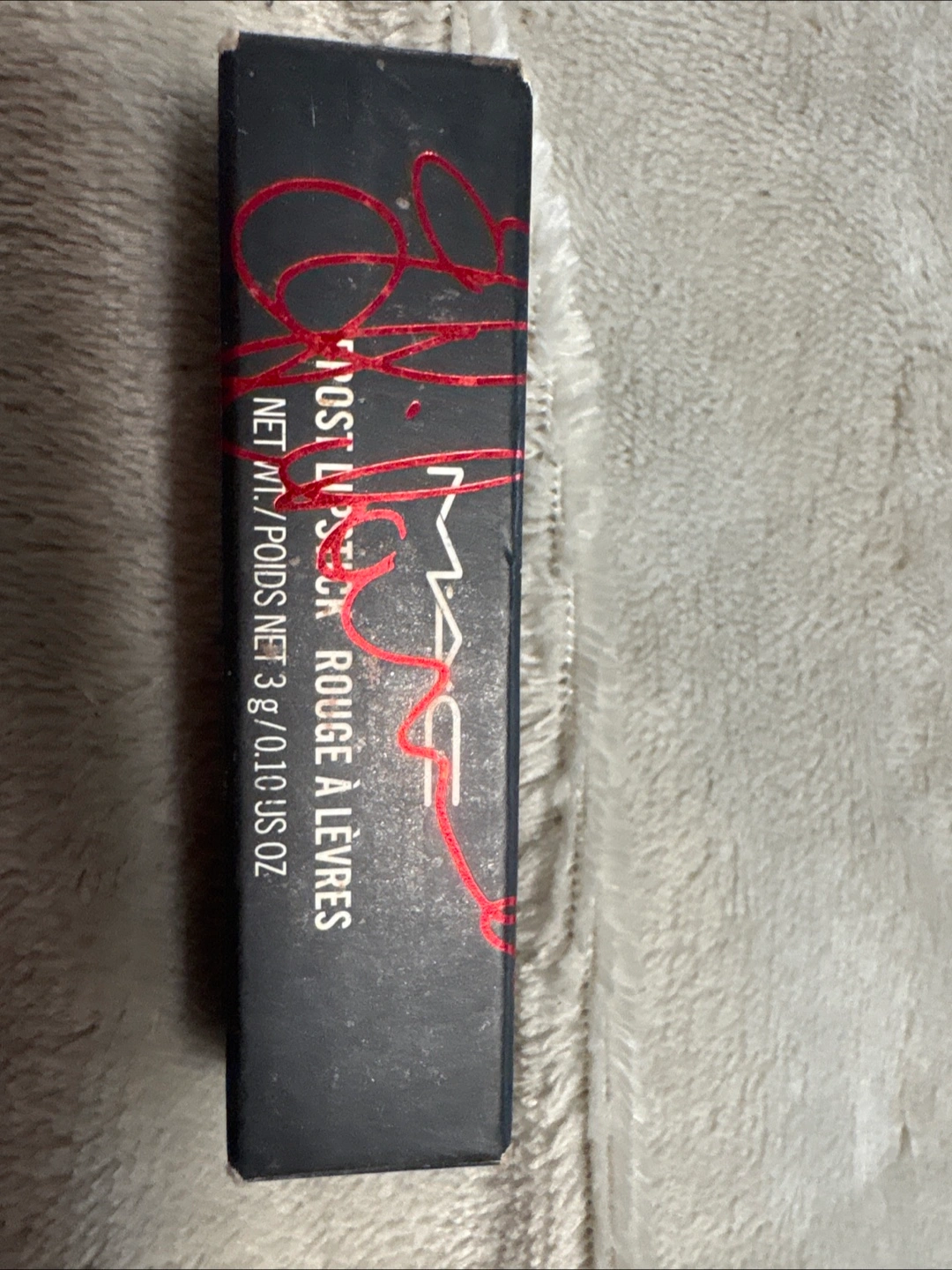 Lipstick in a red metallic colour. Has a matte red tube. Comes with the original box. Consider this lipstick as a way to treat yourself. Never used viva glam lipstick in a beautiful red with blue and gold under tones limited edition shade