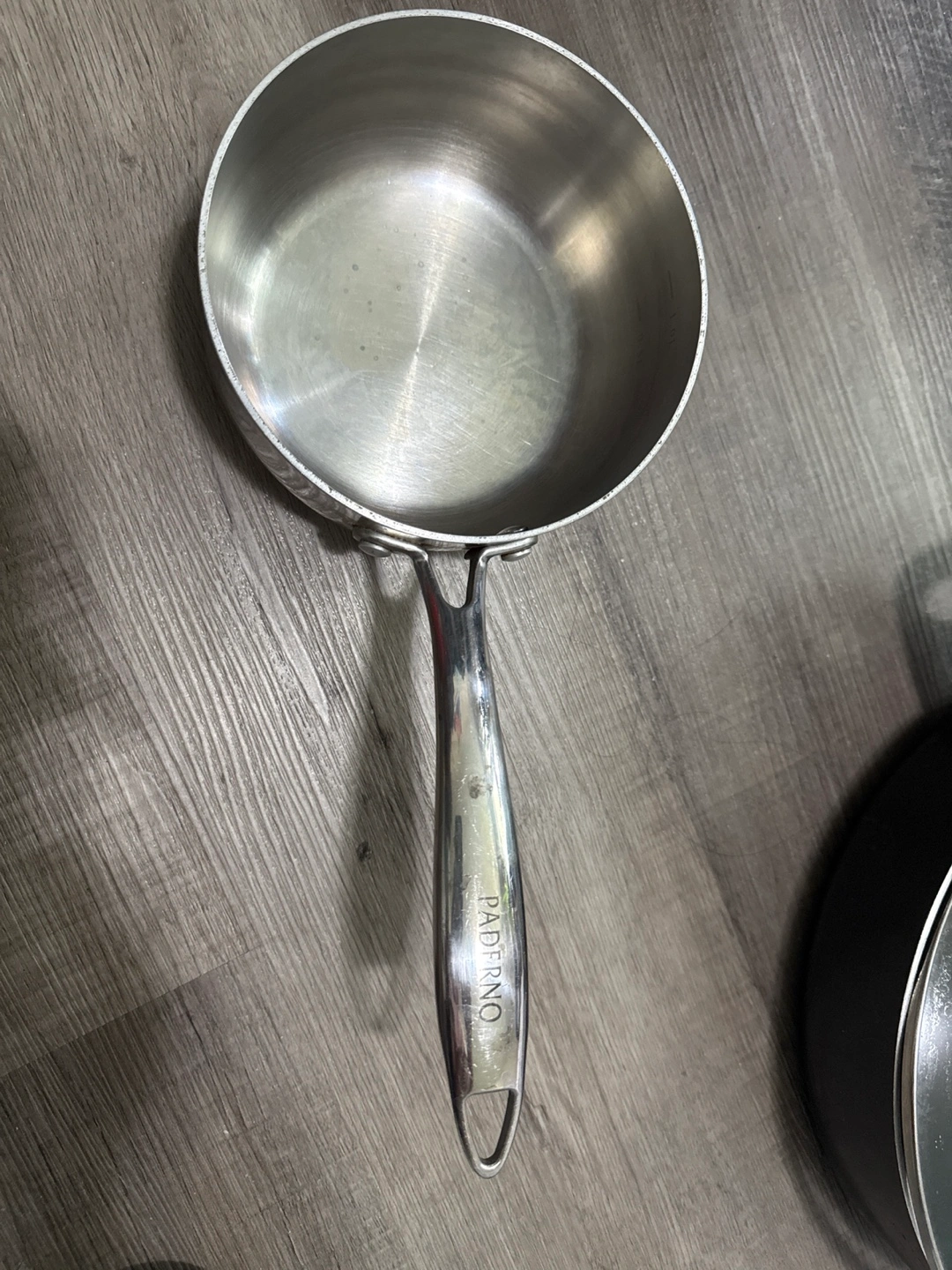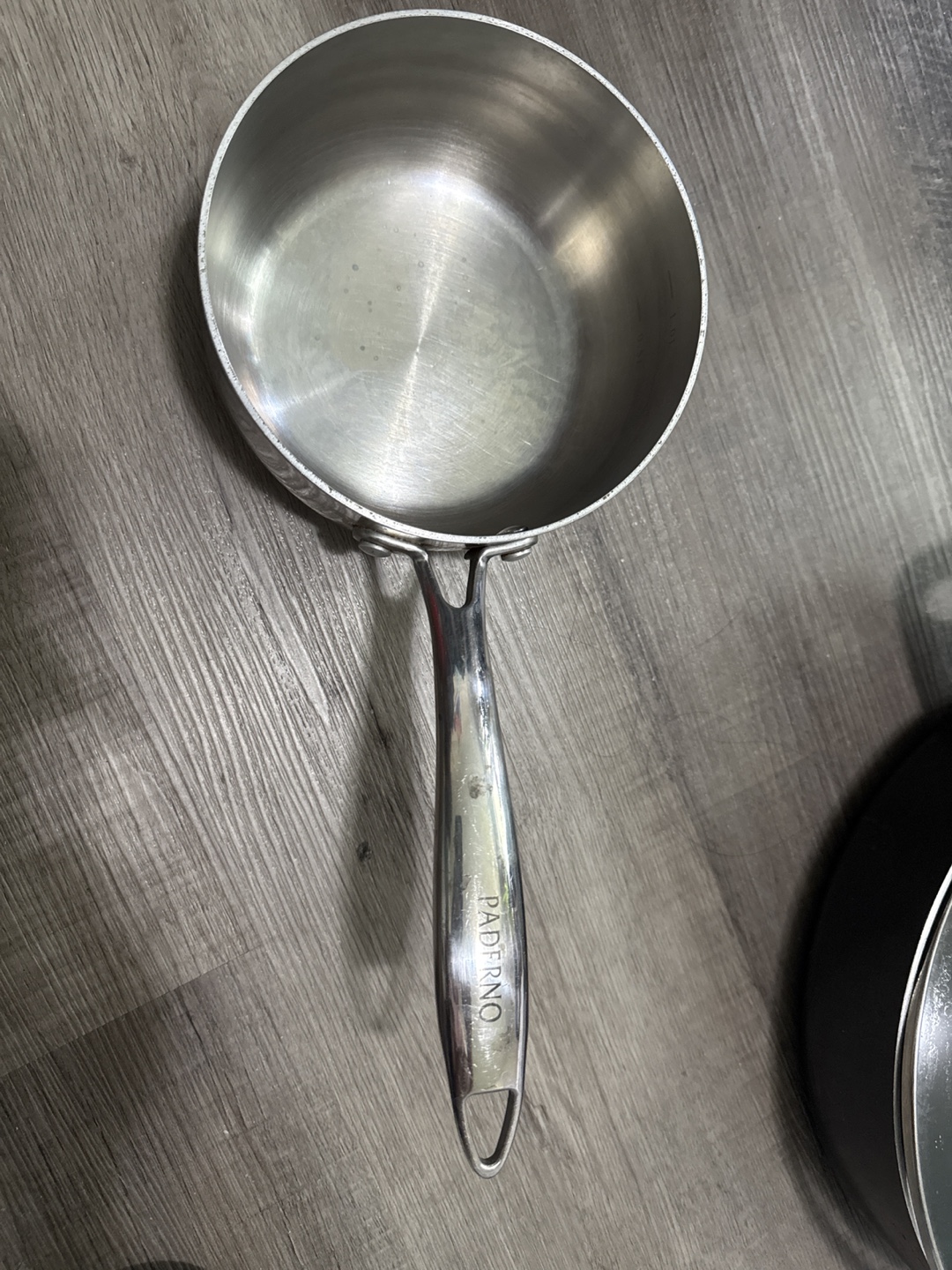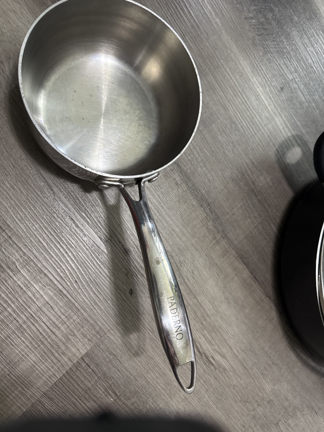 Stainless steel saucepan. Comes with a long handle. Perfect for making a hot chocolate on a cold day.