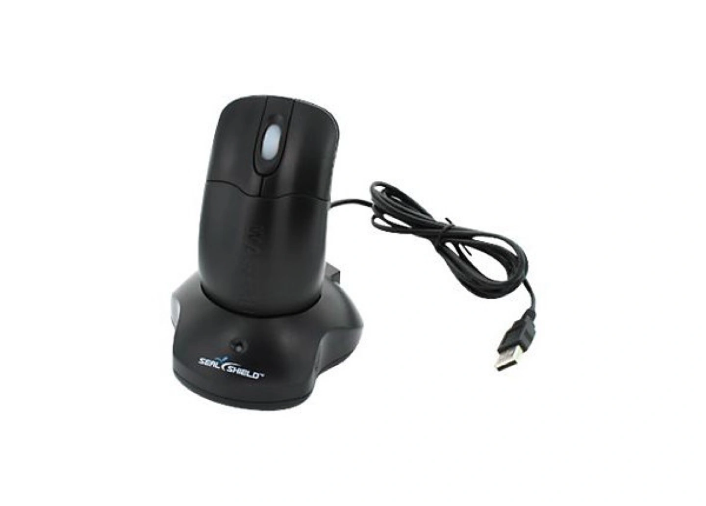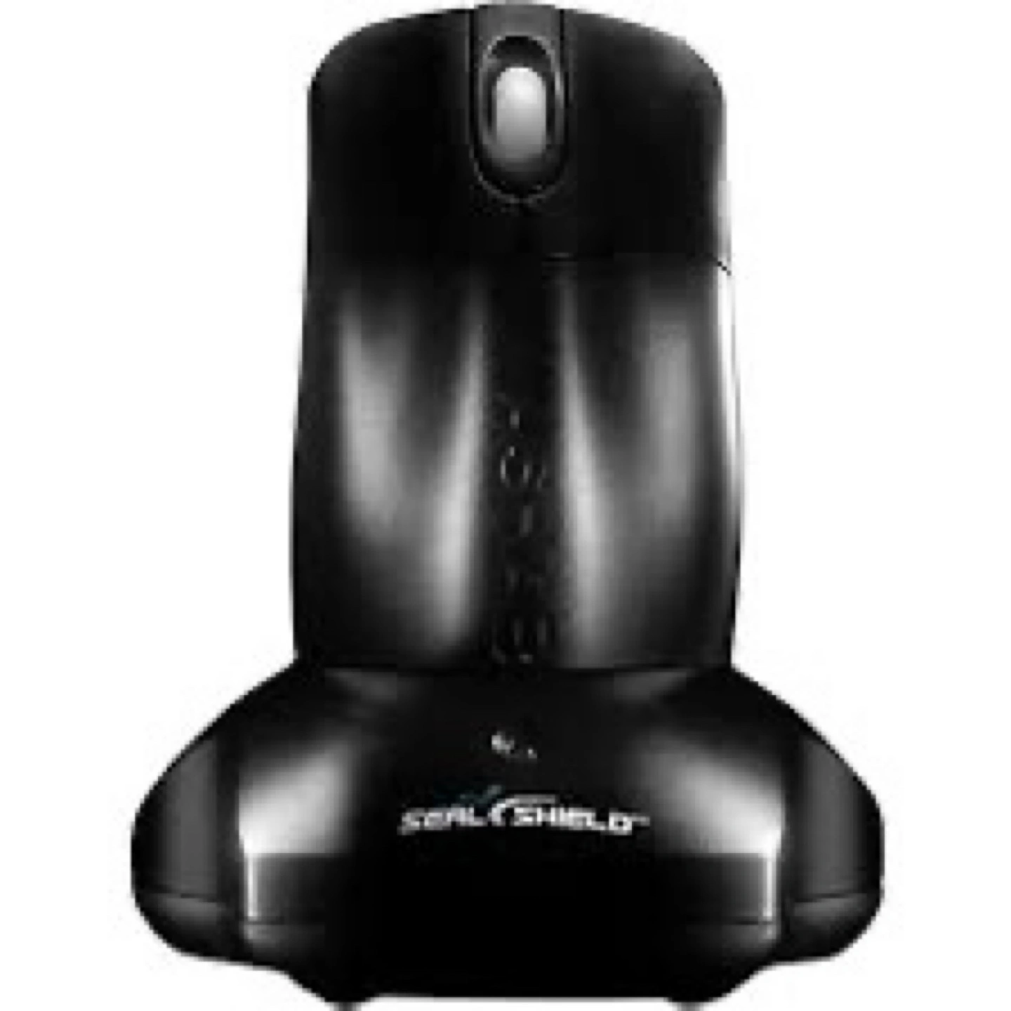 Waterproof, RF Wireless, 1000 DPI Optical Mouse with Scroll Wheel + 2 Button, Charging Base with Integrated 3 Port Black USB Hub, Black