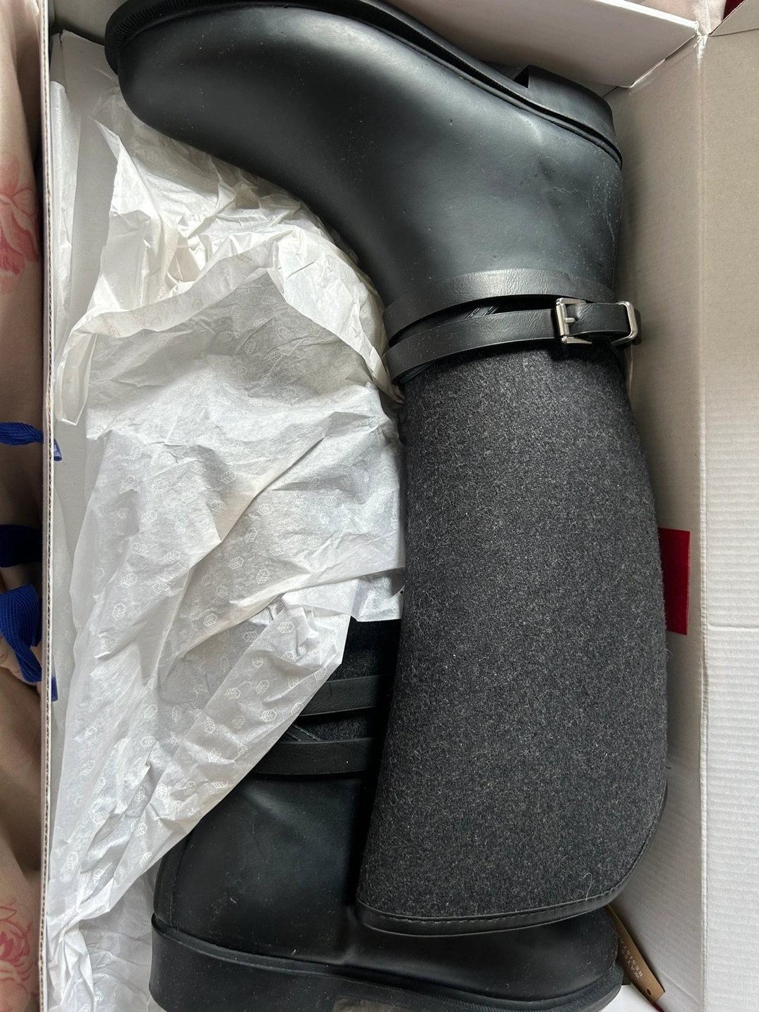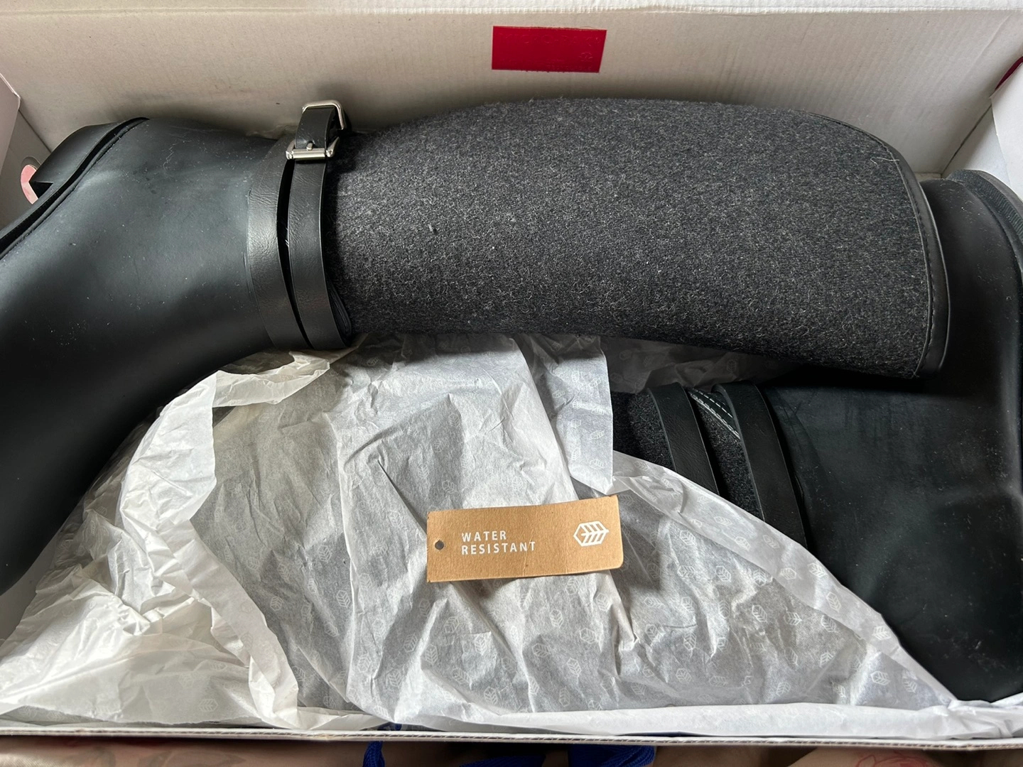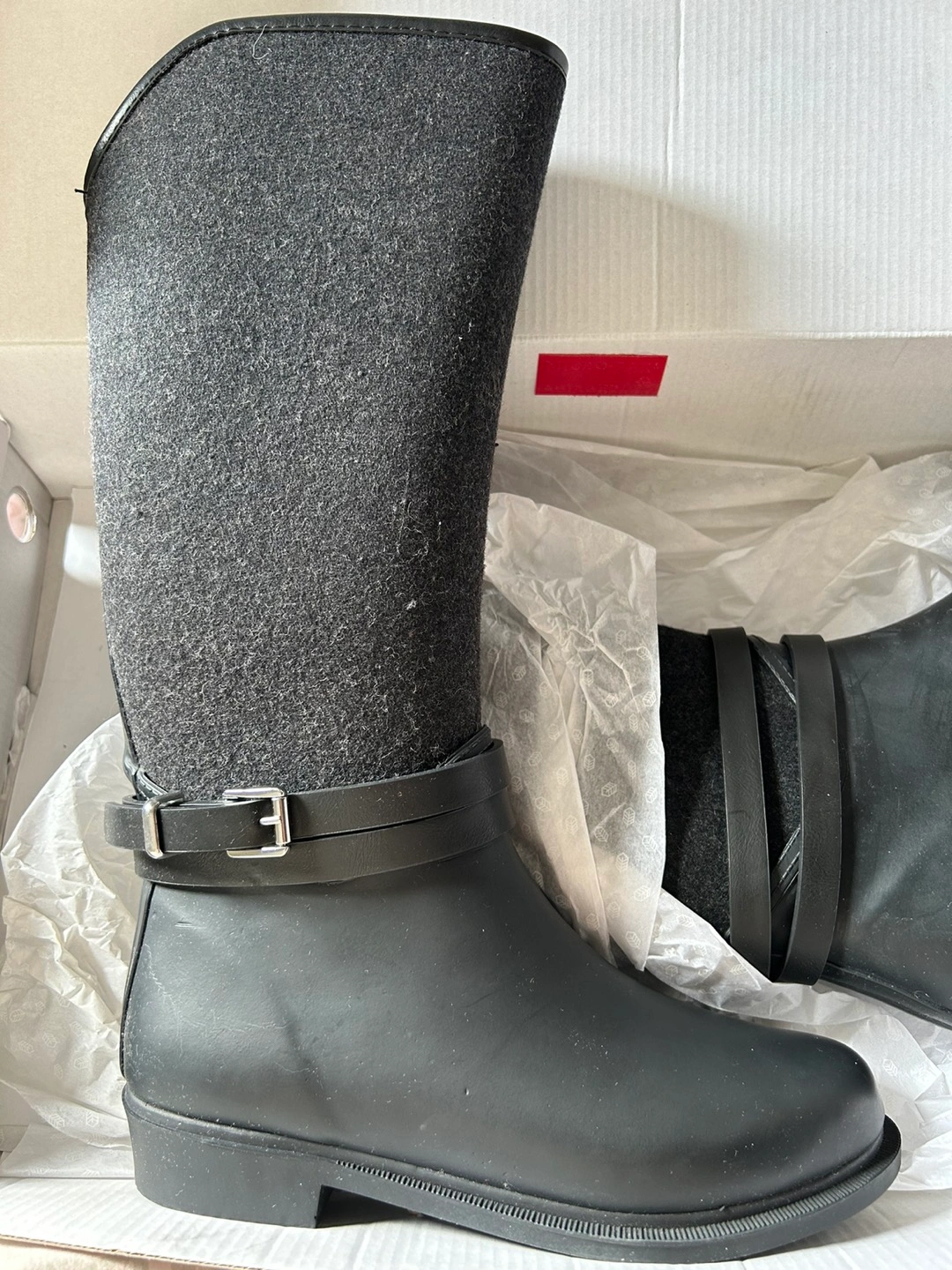 Brand new - wool and rubber roots. Bought them for 60 but never wore them. Water proof and long in length. Perfect for any weather.