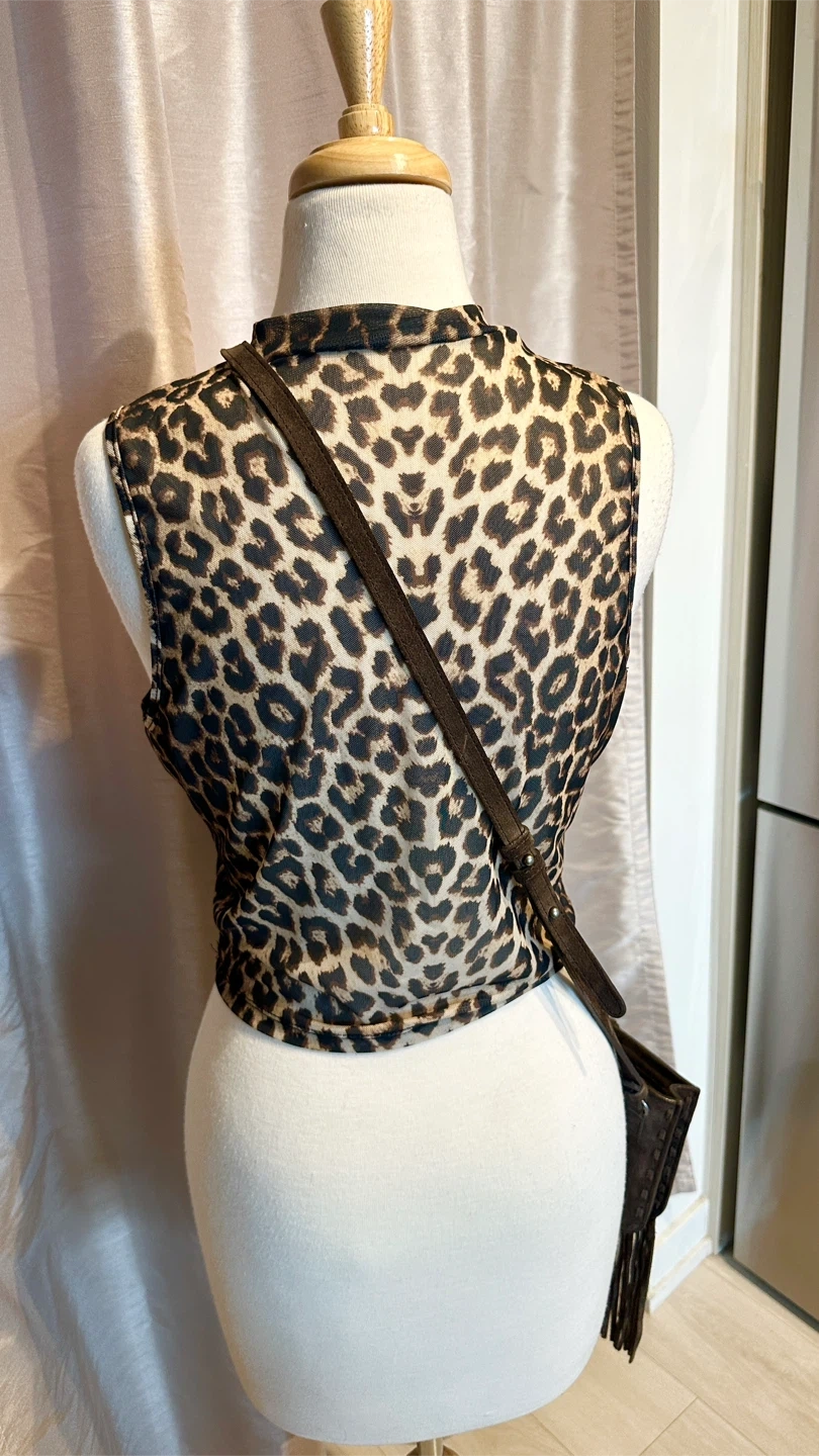 1000+Brand new. Silky soft cooling fabric. Featuring a sheer leopard print. Sleeveless style with a cowl neckline.