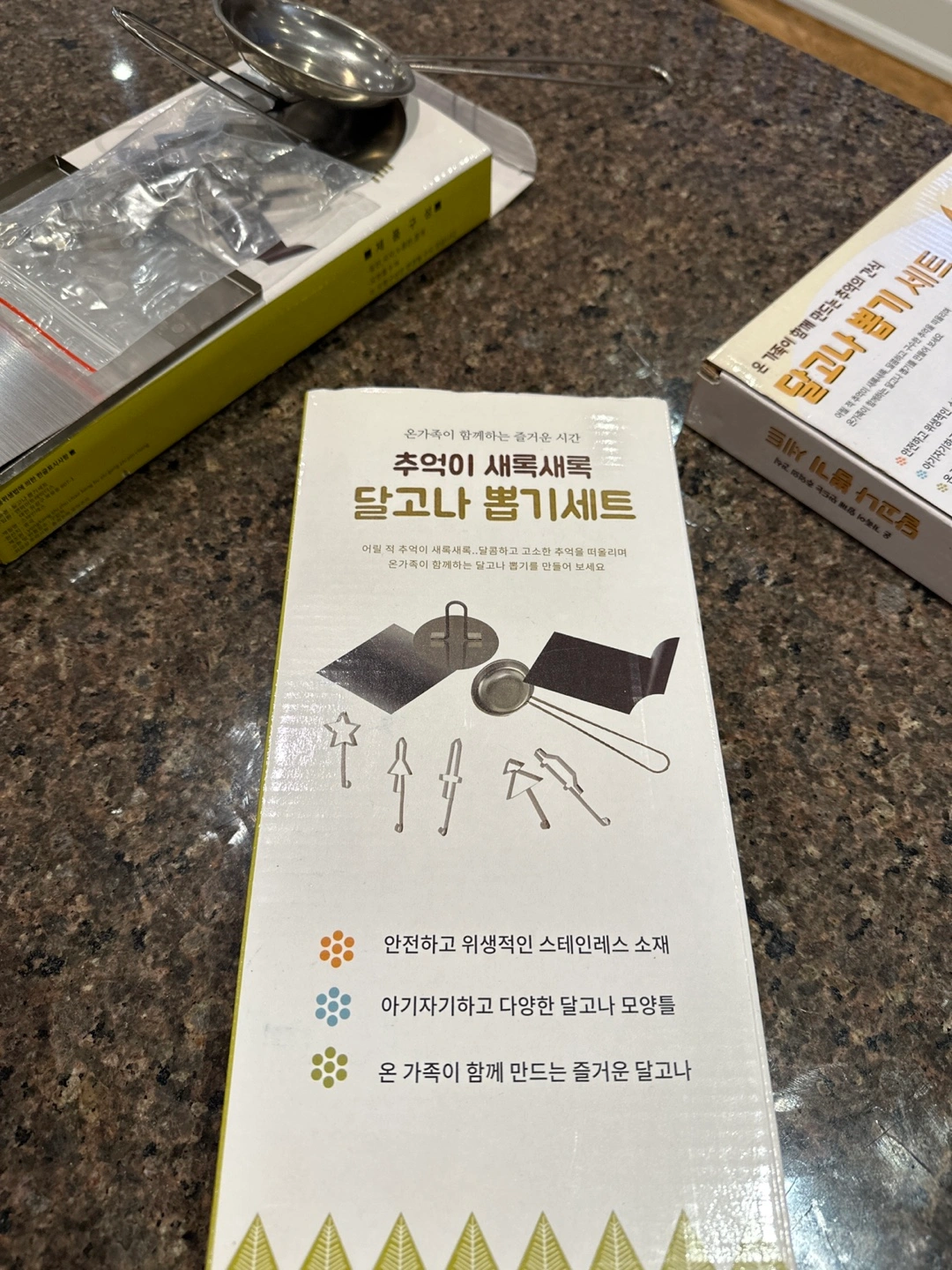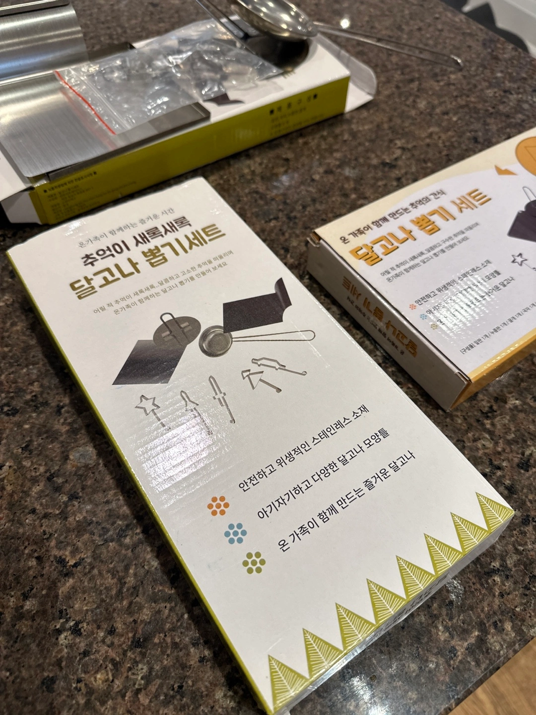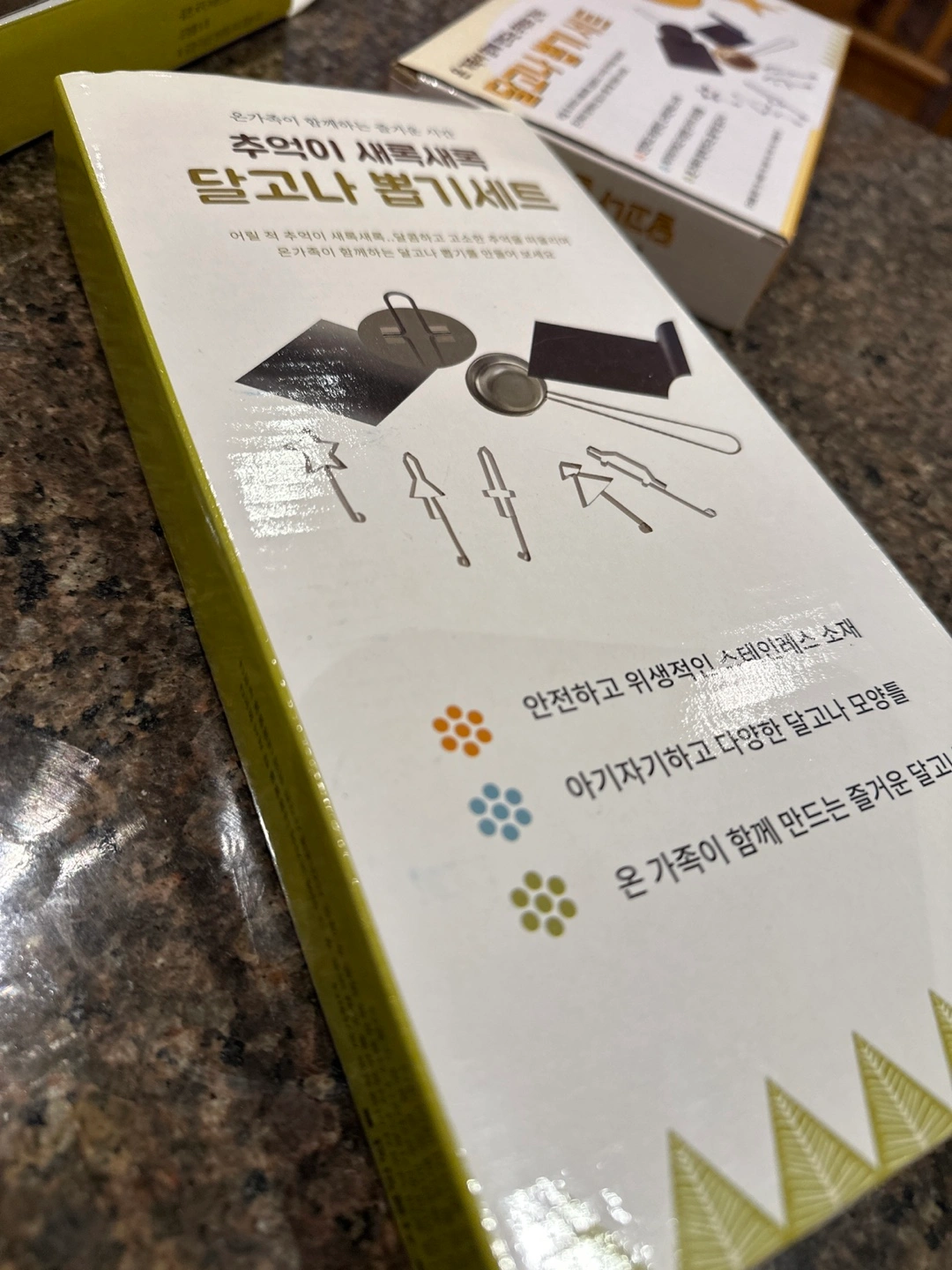 Here's a kit to make the nostalgic Korean treat, Dalgona candy. It includes a variety of tools. Makes for a lovely, sweet activity to do with friends or family.