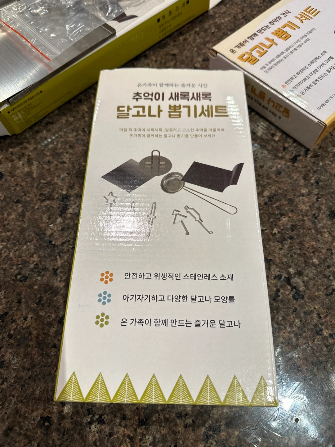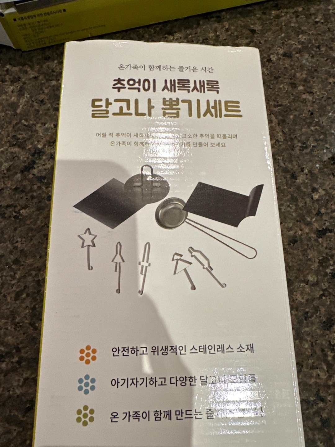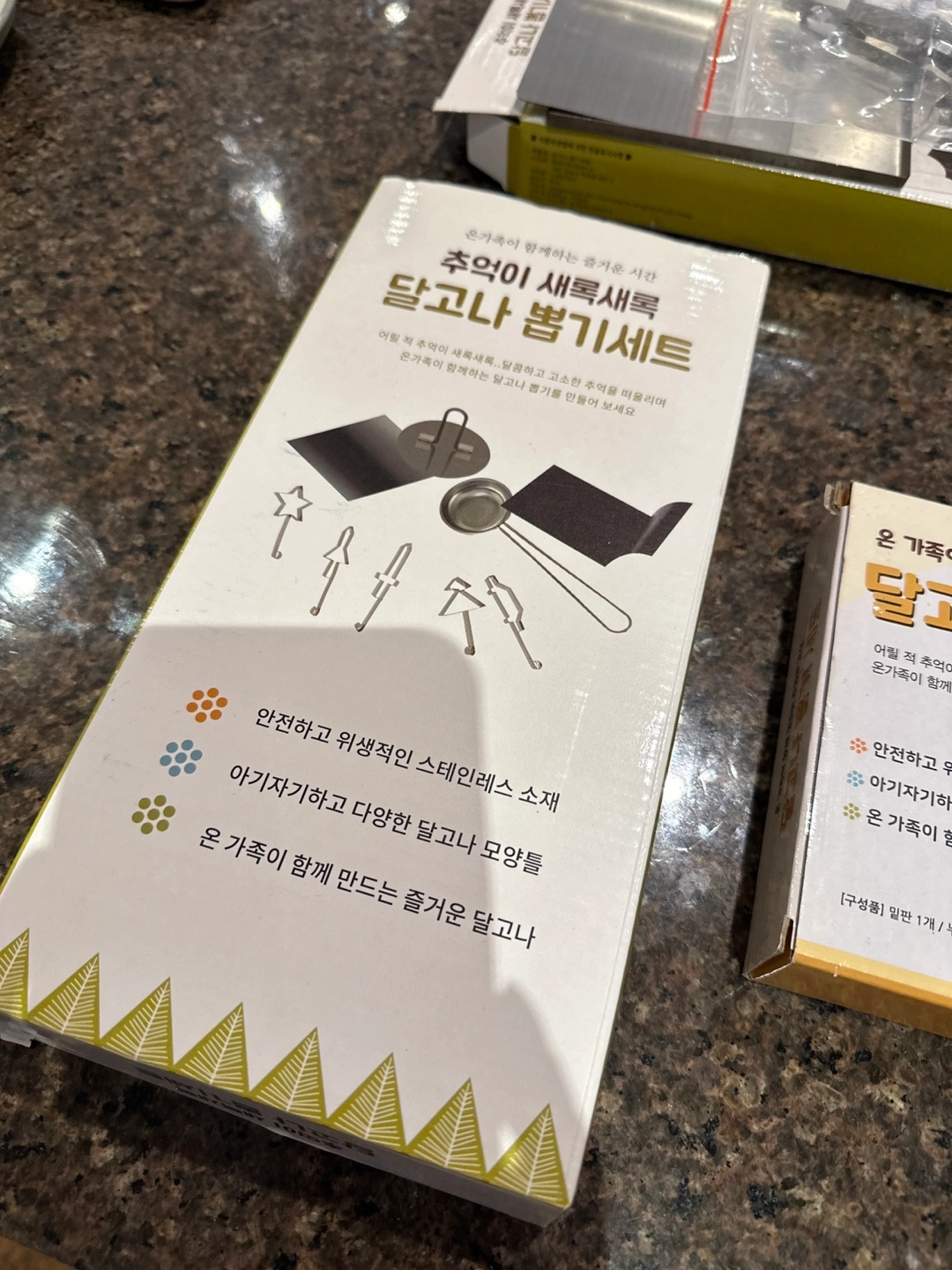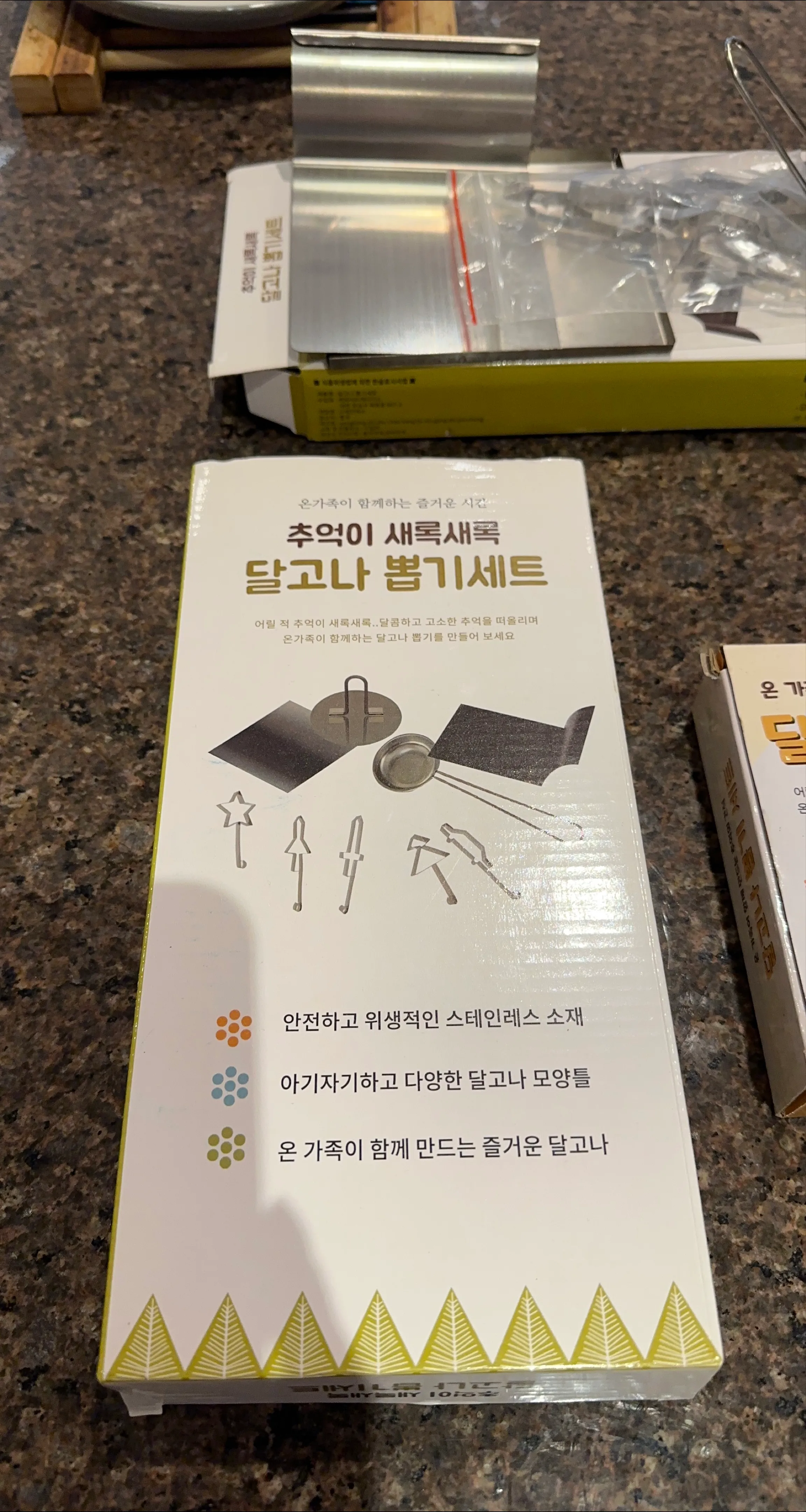 Here's a kit to make the nostalgic Korean treat, Dalgona candy. It includes a variety of tools. Makes for a lovely, sweet activity to do with friends or family.
