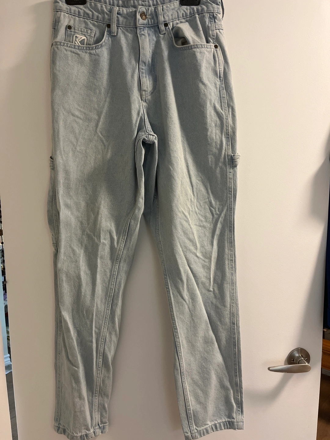 These light wash jeans are perfect for any casual occasion. They have a relaxed fit. Front and back pockets, with a carpenter-style pocket. You will love wearing these.
