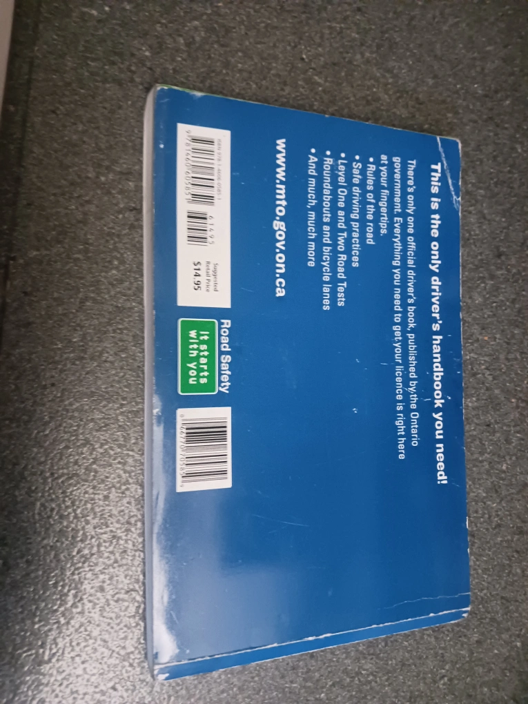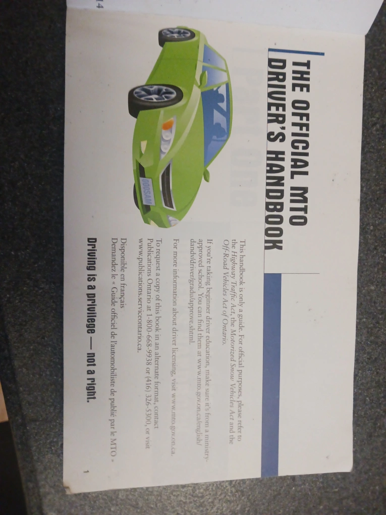 The driver's handbook includes a lot of information for your road and knowledge test. It looks like a book with a green car on the cover. Reading it will help you feel prepared and confident for your road and knowledge test.