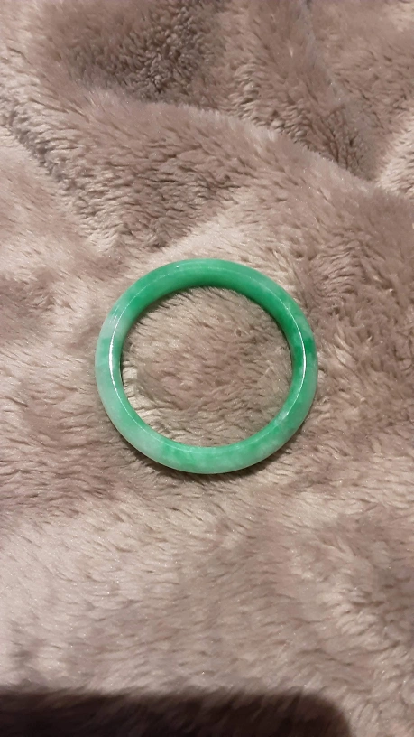 A striking jade bangle. Showing off shades of green. Would be a beautiful addition to your jewelry collection. size 13cm or 130mm