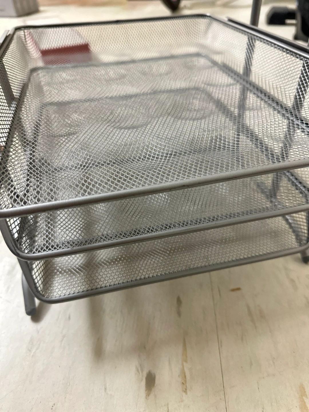 Three tier metal mesh letter tray. It can be used to organize documents. A great way to declutter and organize your desk or office space. - Pick up near parliament and ontario