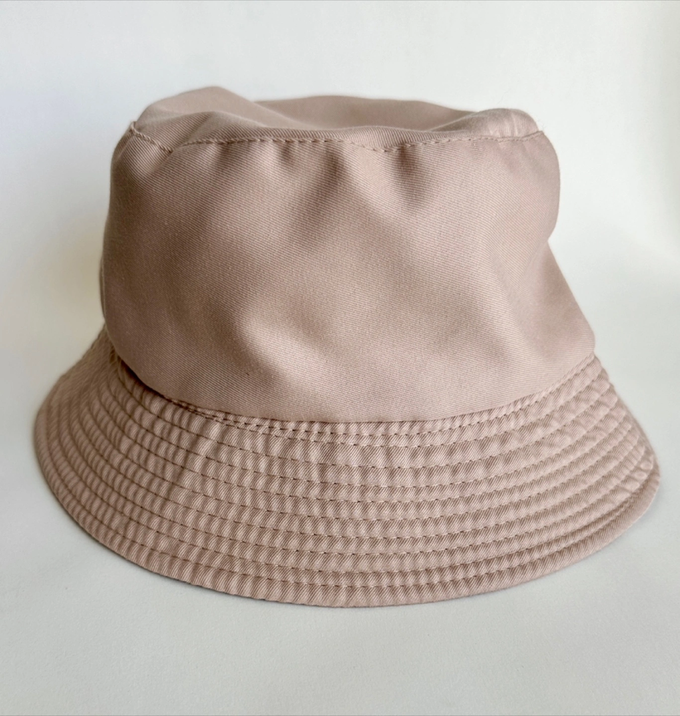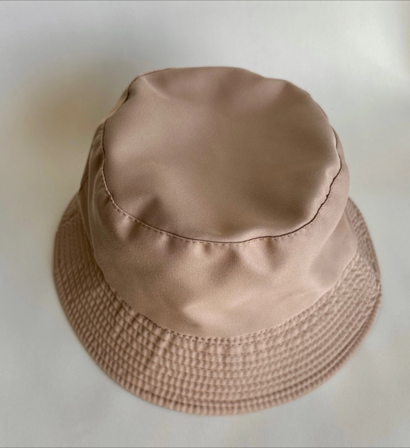 Unisex reversible bucket hat. One side in a warm taupe colour. The other side is black. Stylish, clean design. Durable nylon fabric.