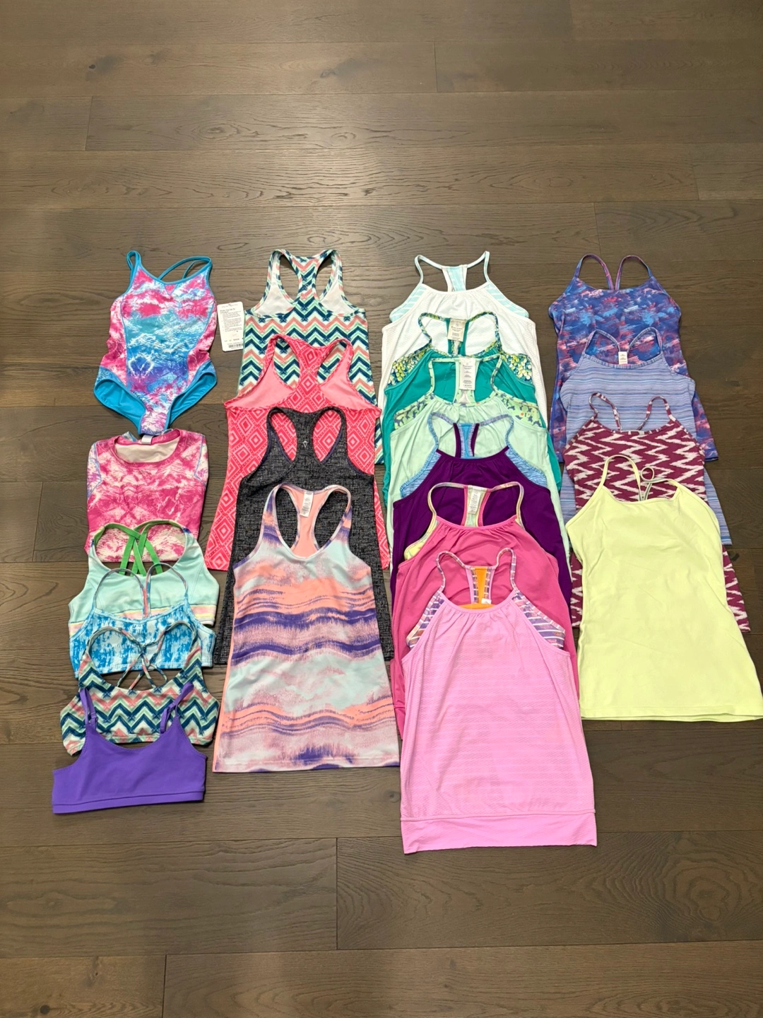 Only one item is used (soft yellow tank) Just purged my daughter’s closet. Made by lululemon for girls. $25 each to $49 each price is firm Pick up at Yonge and eglinton in Toronto Or can meet on my way home at Keele and eglinton Weston and 401 Royal York and eglinton Sherway gardens Major Mac & Weston in Vaughan