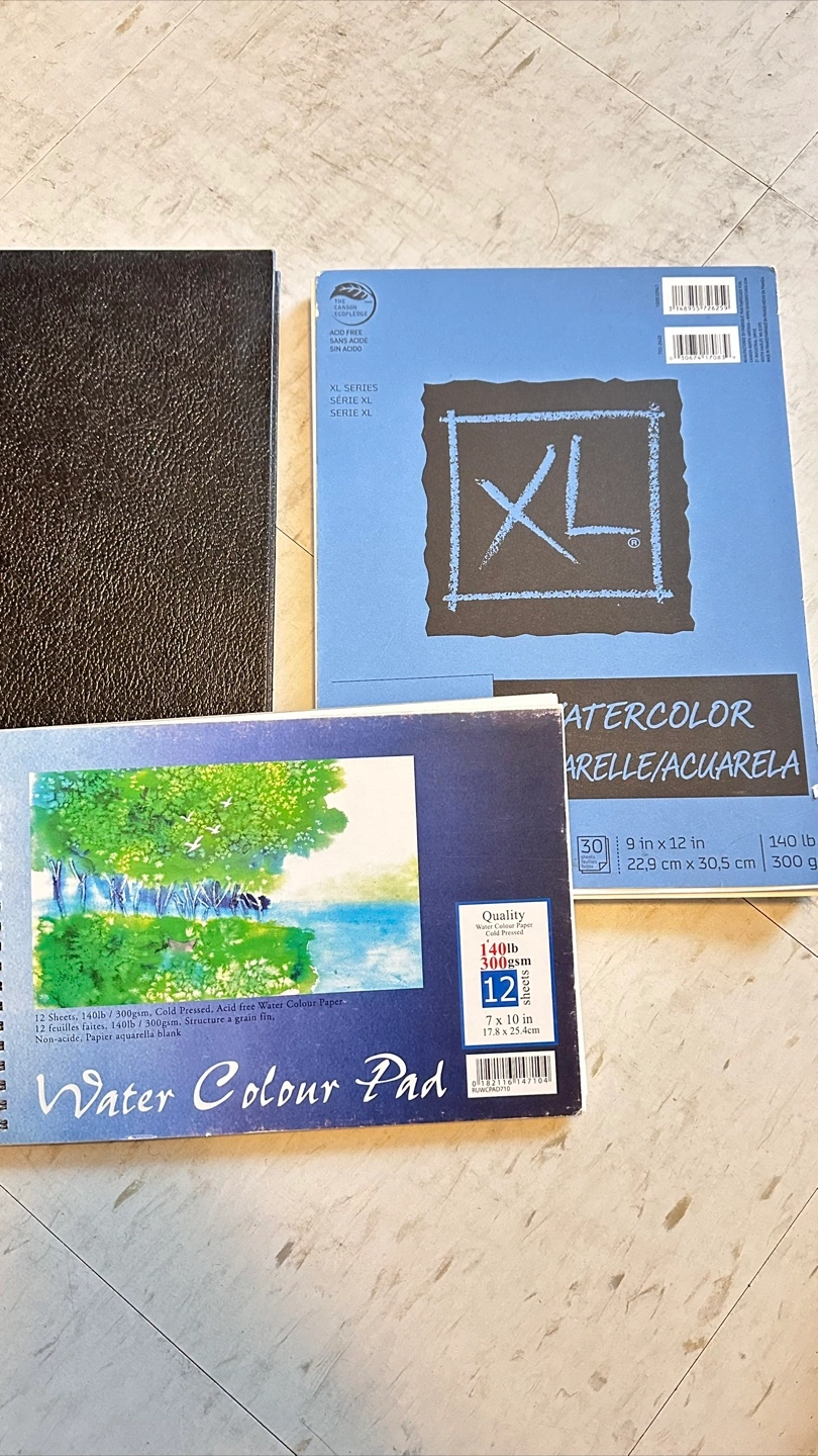 Watercolor pads of various sizes and brands. Some spiral bound, some bound with a hard cover. Perfect for creating unique art, a great way to relax. - 2 watercolour sketchbook 1 mix medium sketchbook (lightly used) 3for $5 pickup near parliament and ontario