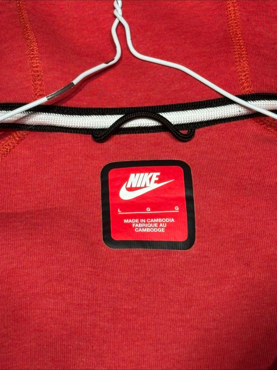 Selling a Nike Tech Fleece Hoodie in red – Men’s size Large.