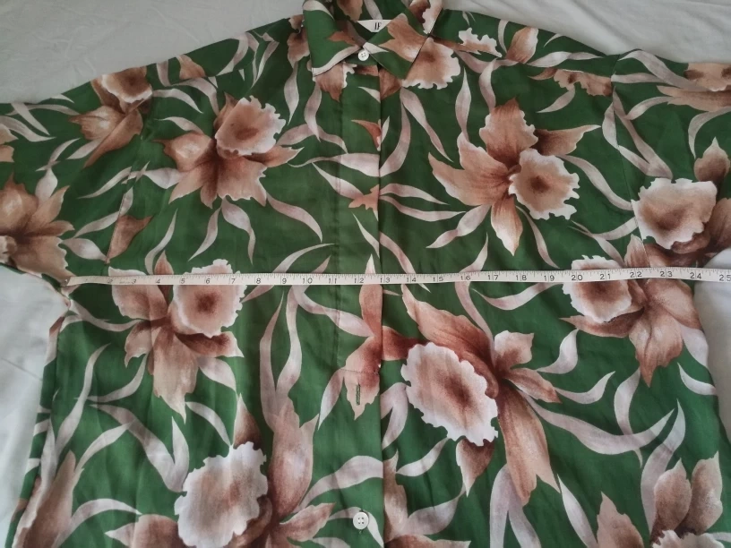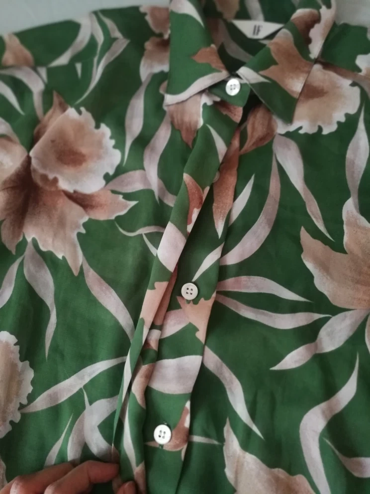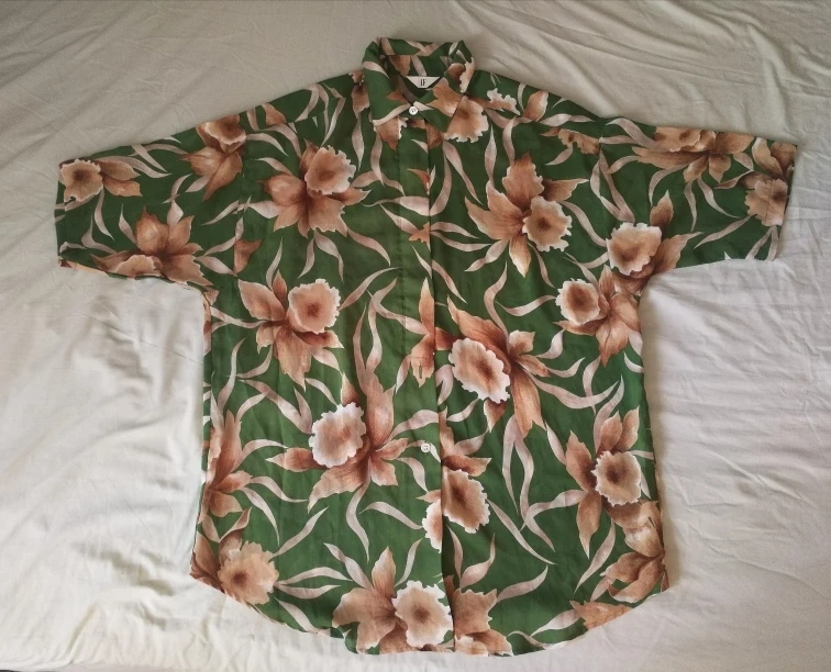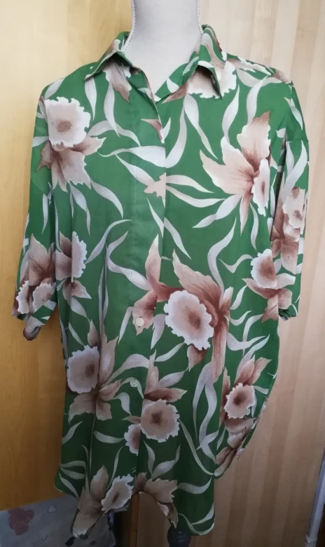 Beautiful vintage green floral button-up shirt wrinkle free, translucent women plus size fits up to 2XL pick up in downtown close to St Patrick station, Dundas-University area