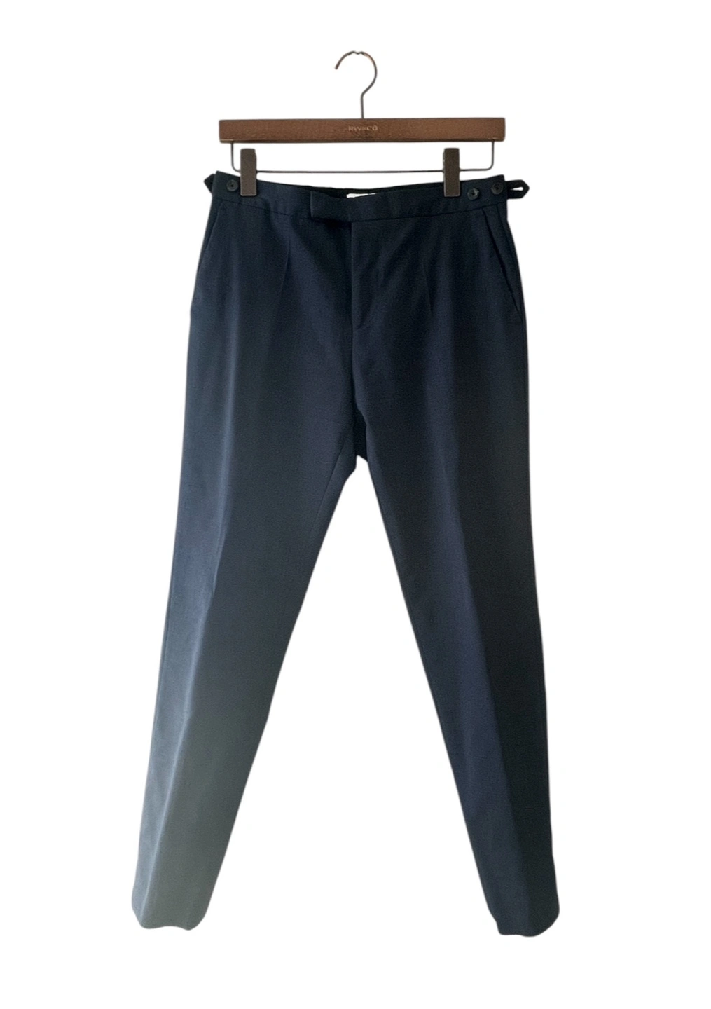 The Malibu suit trousers are tailored in a slim fit from a refined wool blend, showcasing the subtle texture of its sharkskin fabrication. Side adjusters enhance the fit, combining practicality with sleek tailoring.