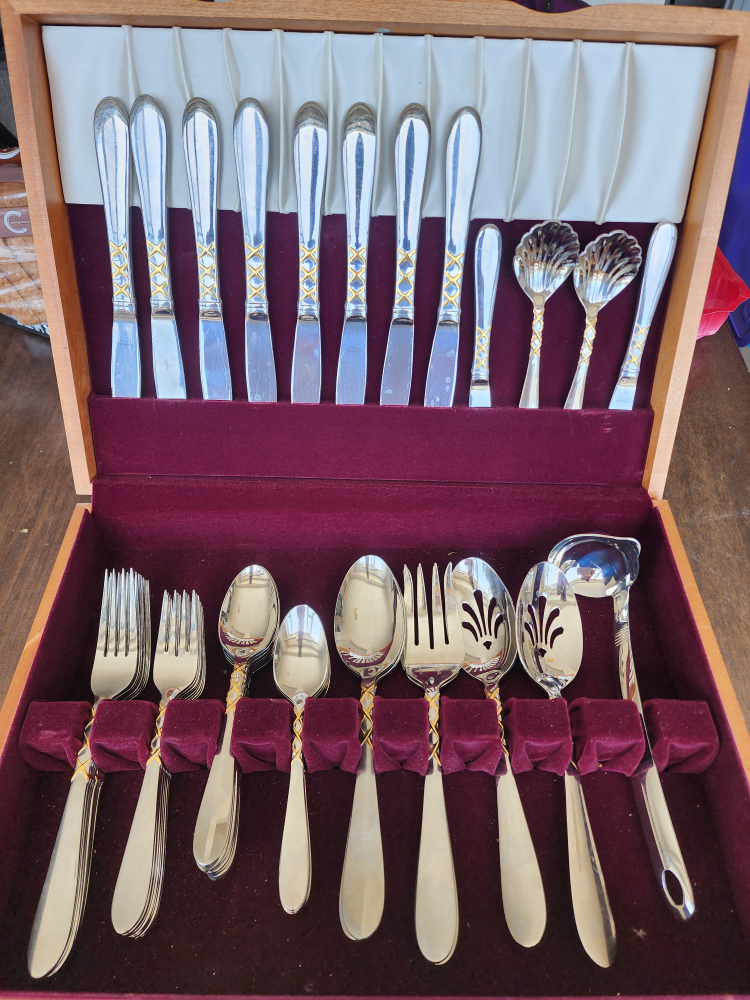 1 / 21 / 2Buy & Sell🥕 Vintage Silverware Set🥕 Vintage Silverware Set$65Silverware set in a wooden case. Great condition! only a few pieces used once or twice. WHERE TO MEETRooster Coffee HouseView MapSELLERverifiedSaraChurch and Wellesley45235 reviews1 chats·0 favorites·30 viewsSEND CHAT TO SELLERHi Sara! I’m interested in your listing.Hi Sara! I’m interested in your listing.Get the Karrot app to chatSign In to chat