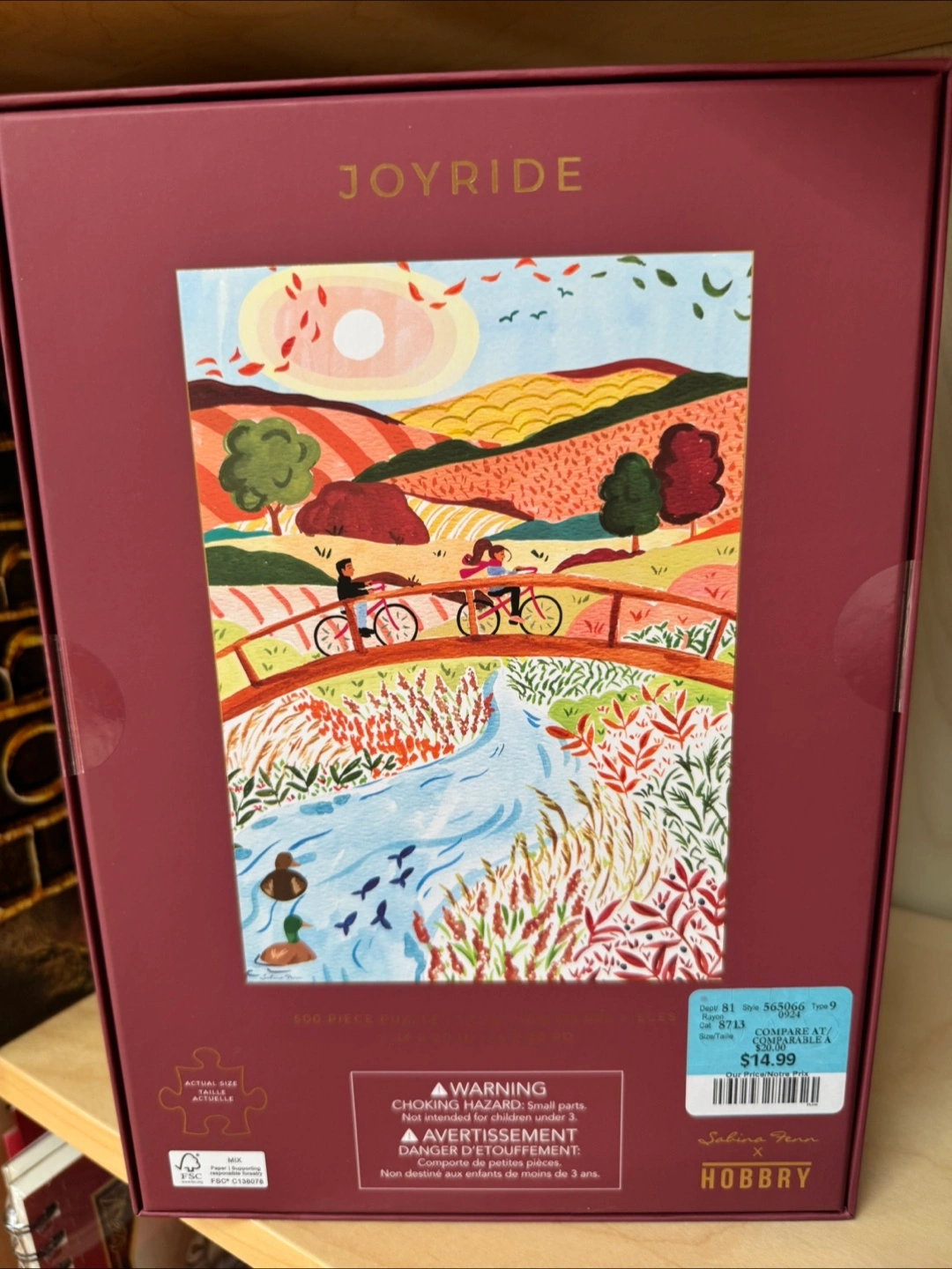 NEW - Beautiful jigsaw puzzle with a scenic image on the front. Features a bridge with two cyclists. A relaxing activity to wind down with at the end of the day.