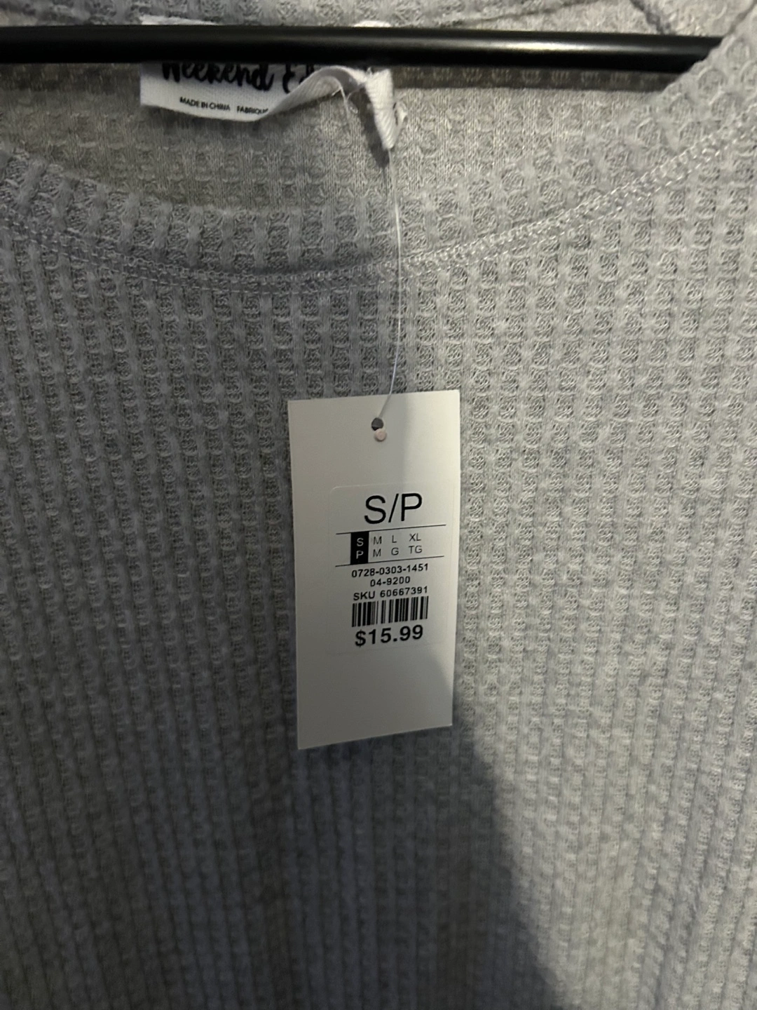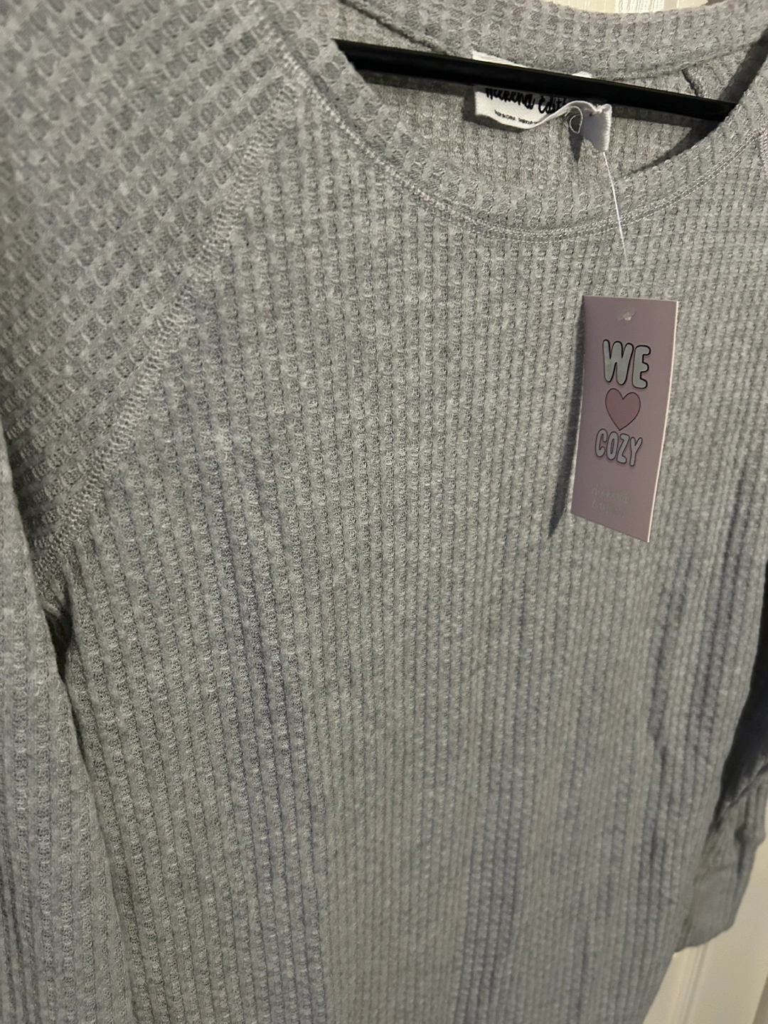 Light gray and dark gray shirt with long sleeves. Features a ribbed texture.