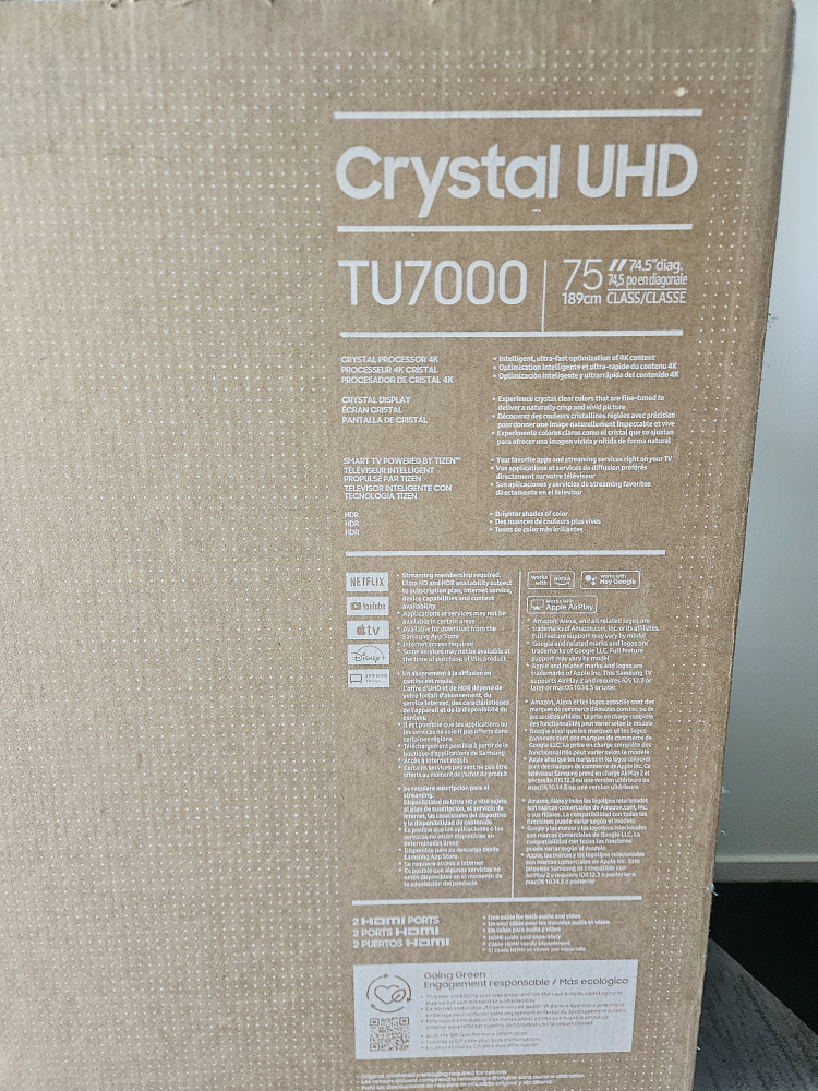Selling our Samsung 75" Smart TV we are downsizing and don't need a large TV anymore that's the only reason were selling so cheap. TV still new and in great condition comes with the original box. looking for $700 firm.