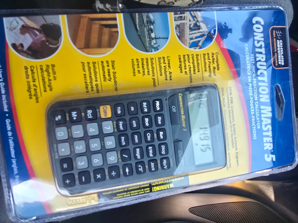 63A calculator for construction, still in its original packaging. This calculator might come in handy for those who enjoy doing carpentry in their free time, bringing a sense of peace and accomplishment.