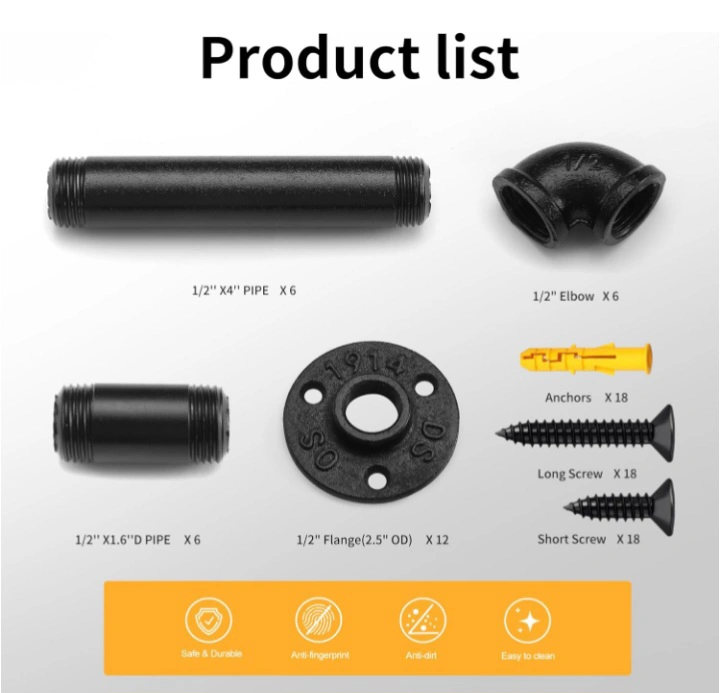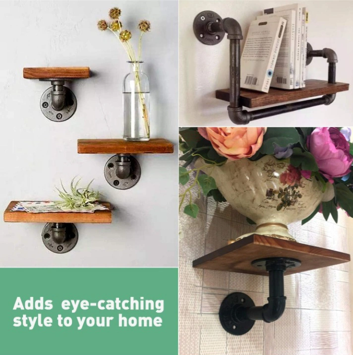 Industrial style pipe shelf brackets. Black finish with a pipe design. A calming way to bring order to any room. Hardware is included.
