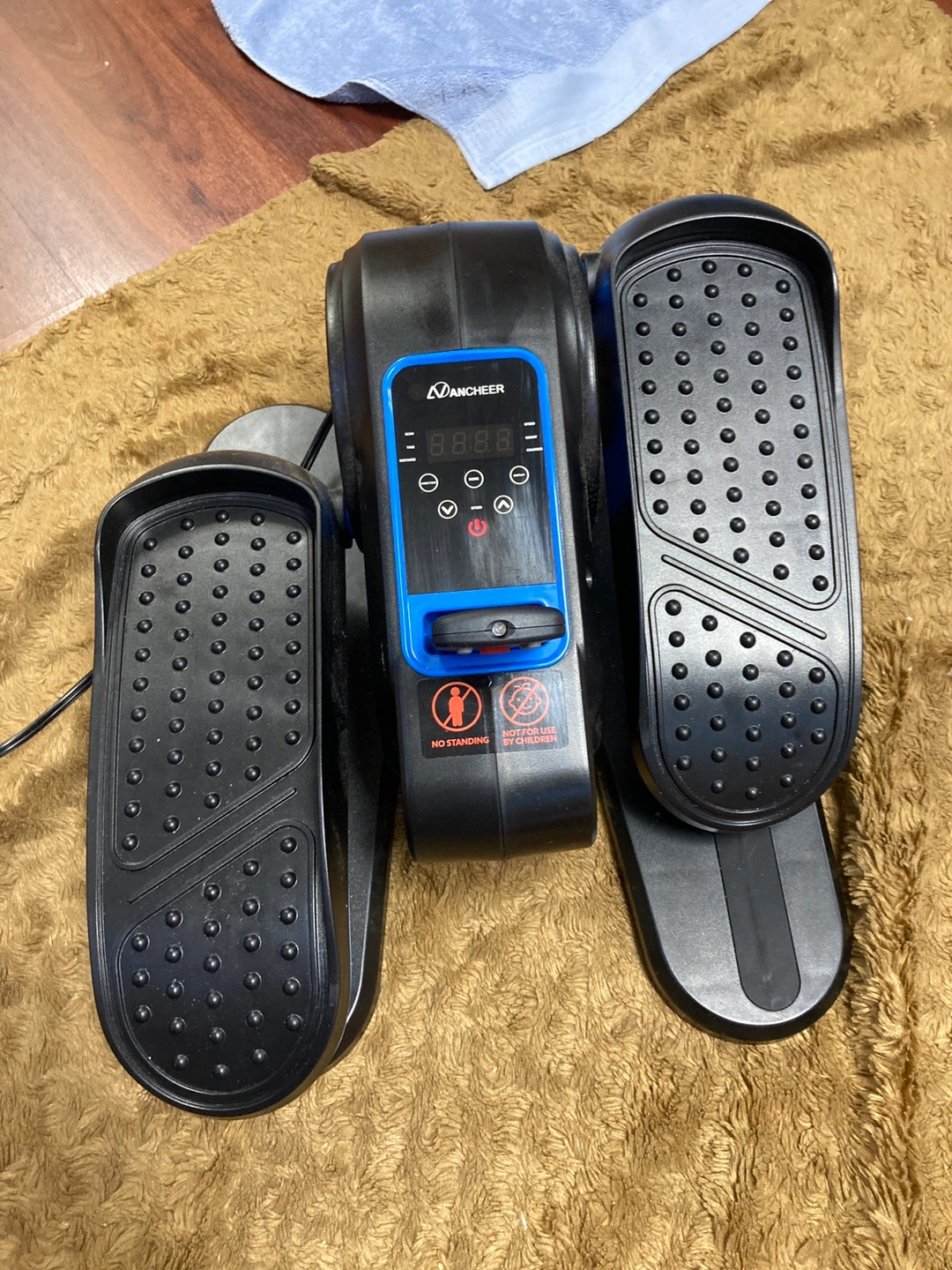 A compact exercise machine. Appears to have a digital display, control buttons, and foot pads. A great way to maintain your fitness routine from the comfort of your home, leading to improved well-being.