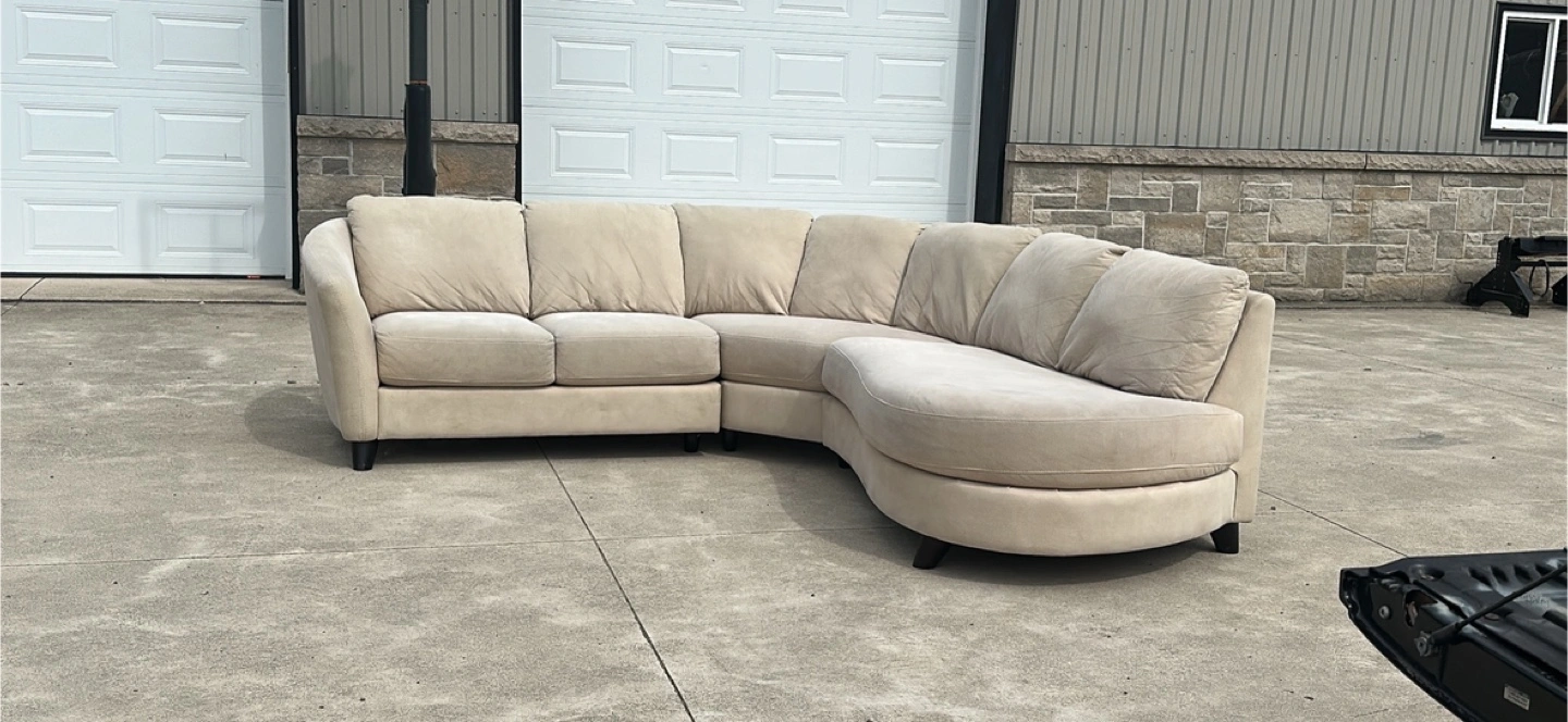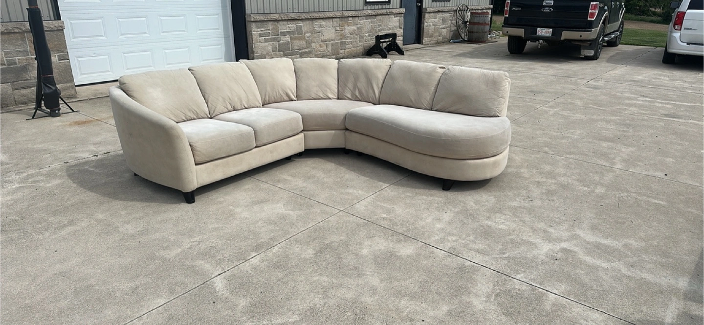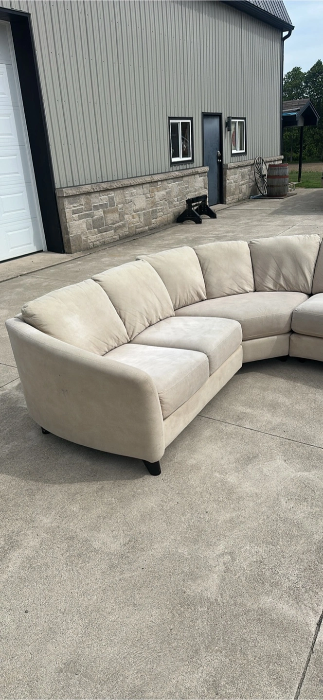beautiful corner sectional cream color, has an elegant curved chaise , it’s very clean smoke and pet free ! die is 81 x 81inches. less than two years old no tears or damages . i can deliver as well