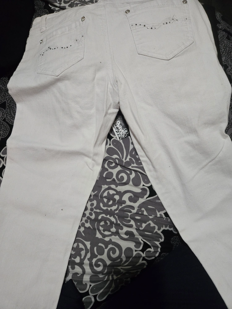 Jeans Jeans Jeans in a variety of colours and styles. Some with embellished pockets. Others feature stud details. A perfect addition to any wardrobe for an everyday look. 3 new with tags $15 each for new/ Used $7-$10