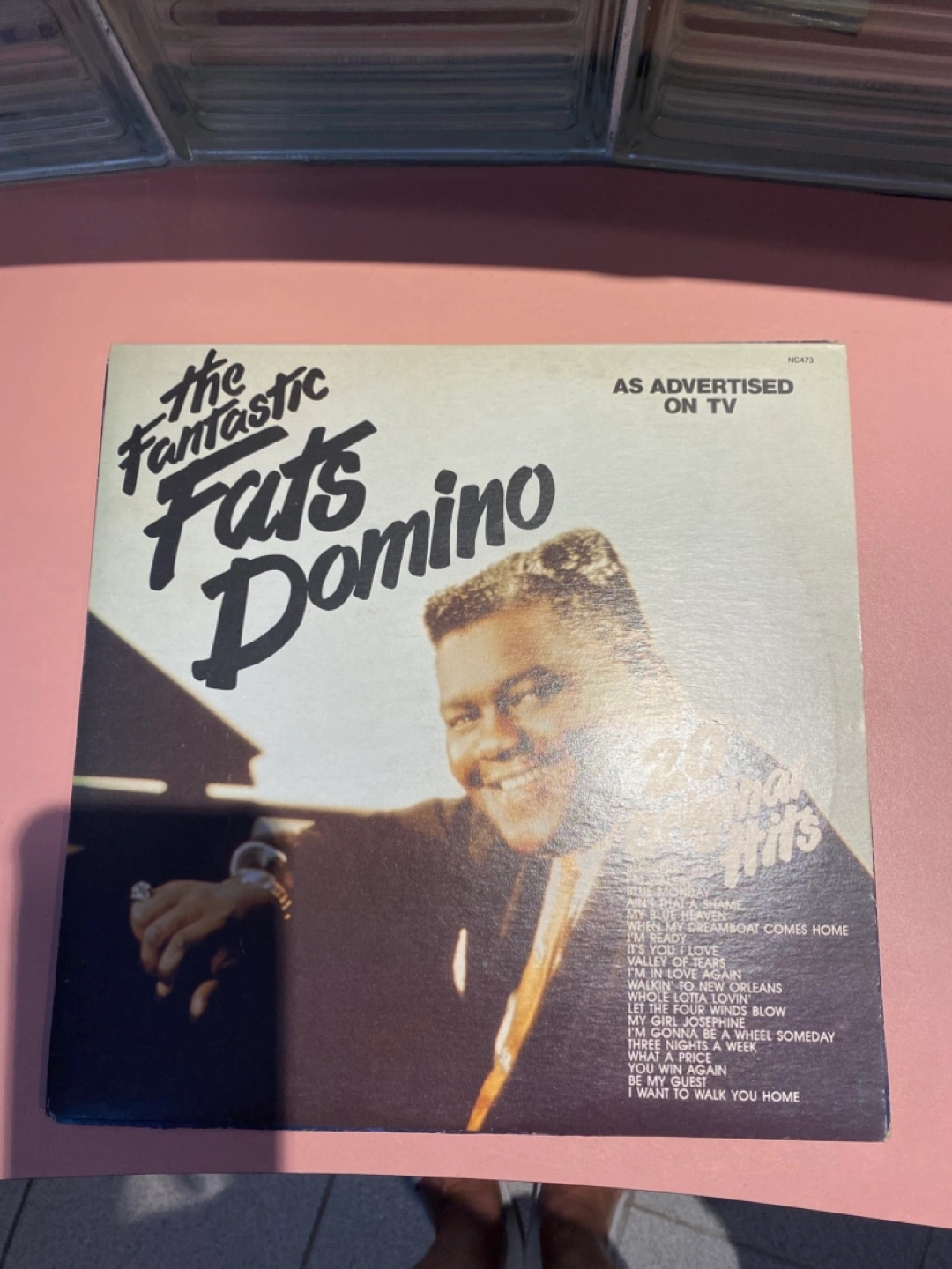 Album cover features Fats Domino and song list. The album has a vintage appearance. This classic album would make for a relaxing listening experience.