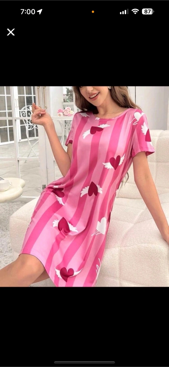 Adorable pink nightgown. Features stripes with winged hearts. A good night's sleep awaits you in this.