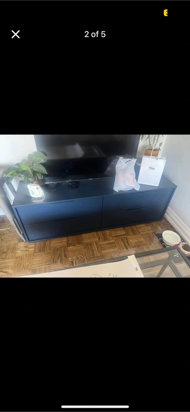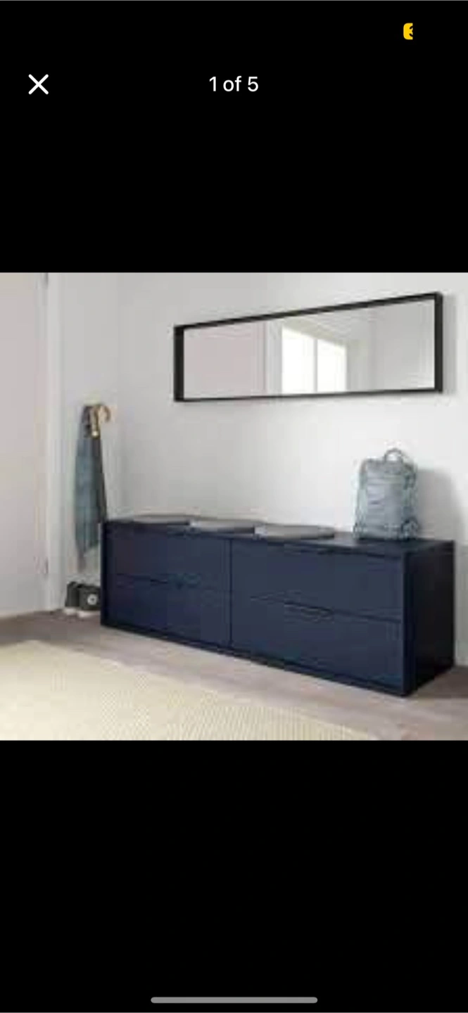 A great option to bring a cohesive look to any room. The dresser has four drawers. It's a dark blue colour, and a modern design.
