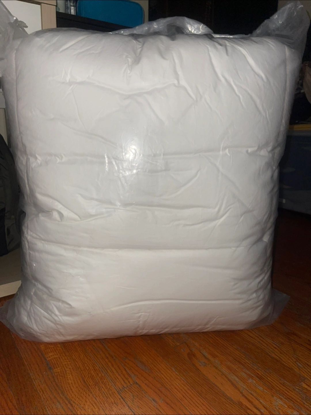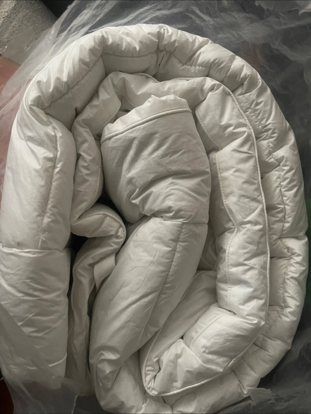 King-size mattress toppers are still in plastic packaging. It's soft and fluffy, perfect for a cozy night's sleep.