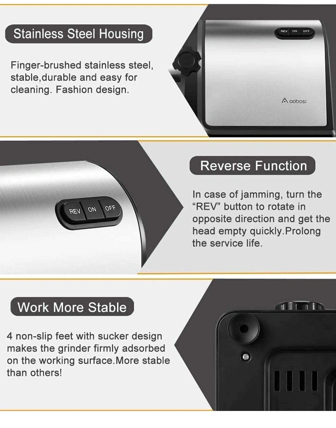 new. Stainless steel housing, durable, and easy for cleaning. It offers a reverse function in case of jamming. It also includes non-slip feet and is very easy to operate. This meat grinder would be great to make your own sausage at home. #AAOBOSI #MeatGrinder #KitchenAppliance #HeavyDutyGrinder #HomeChefGear #SausageMaker #KubbeAttachment #ButcherTools #PowerfulMotor #StainlessSteelGrinder #FoodPrep #KitchenEssentials #BrandNew #ForSaleToronto #KijijiDeals #MarketplaceFinds #KarrotDeals #CookingTools