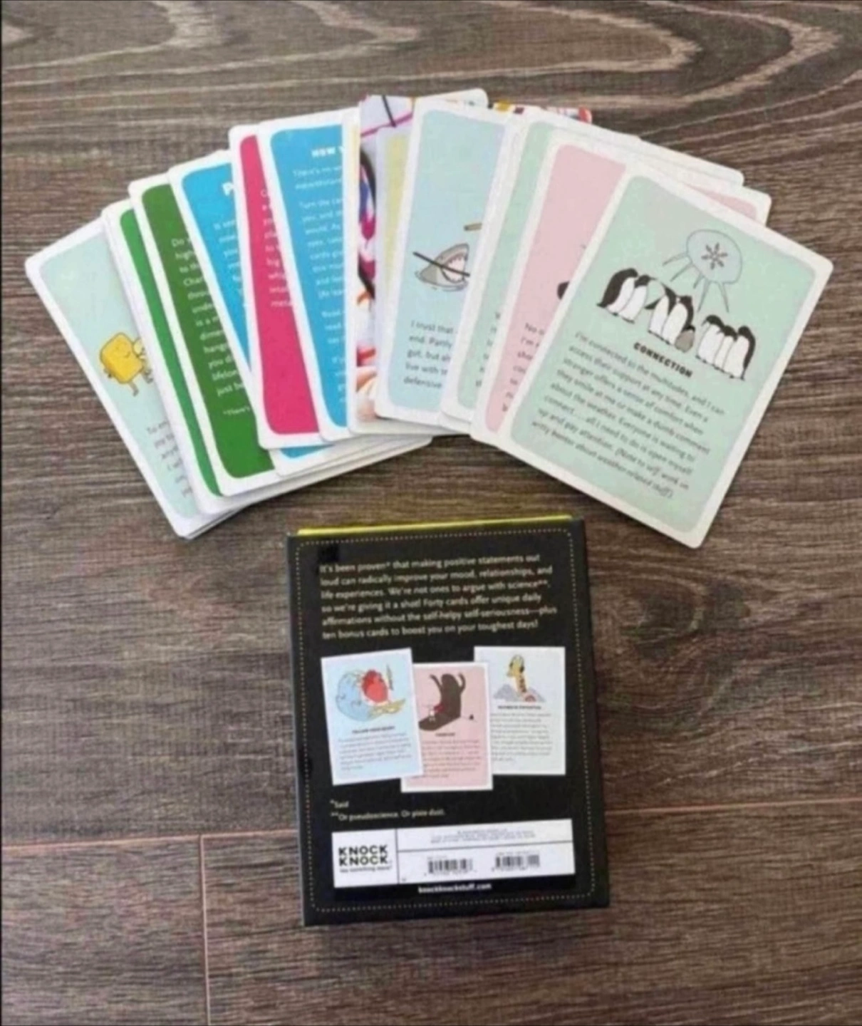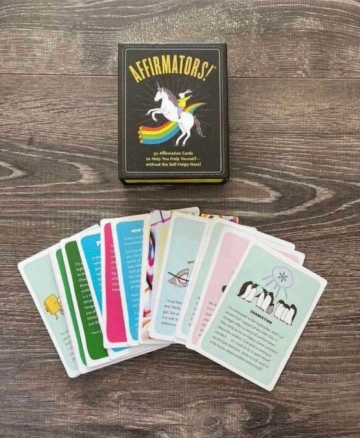 A deck of affirmation cards. Box of cards with colourful images. The cards offer words of wisdom to soothe your mind and soul.