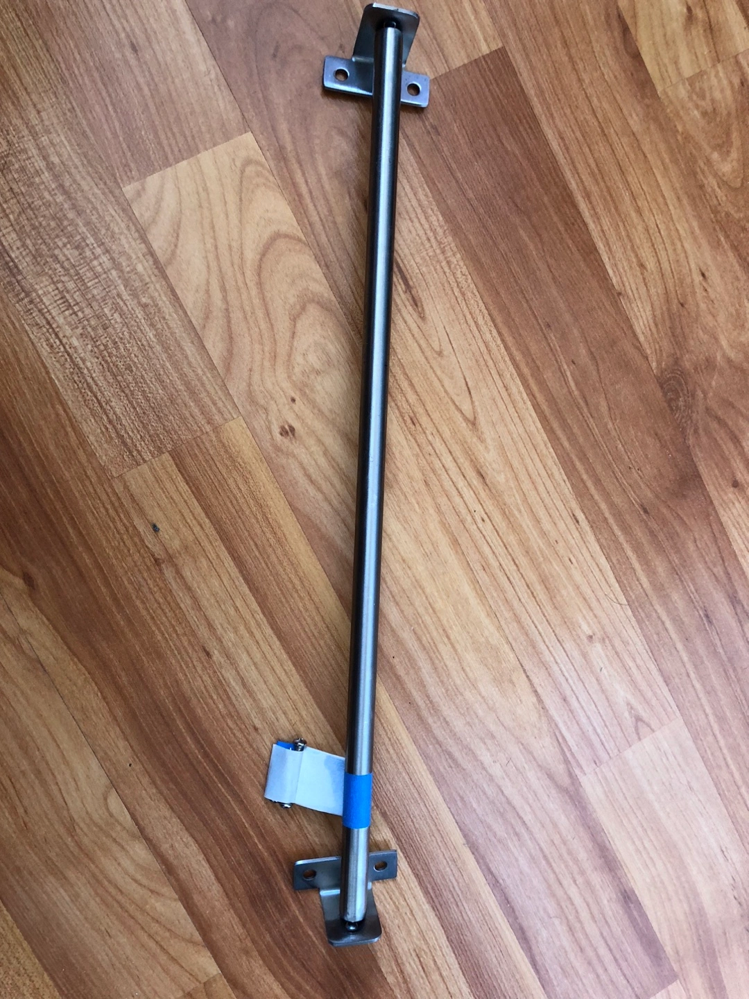 A metal bar with mounting brackets at both ends. Constructed with a cylindrical bar. A great item for any home renovation project, isn't it.