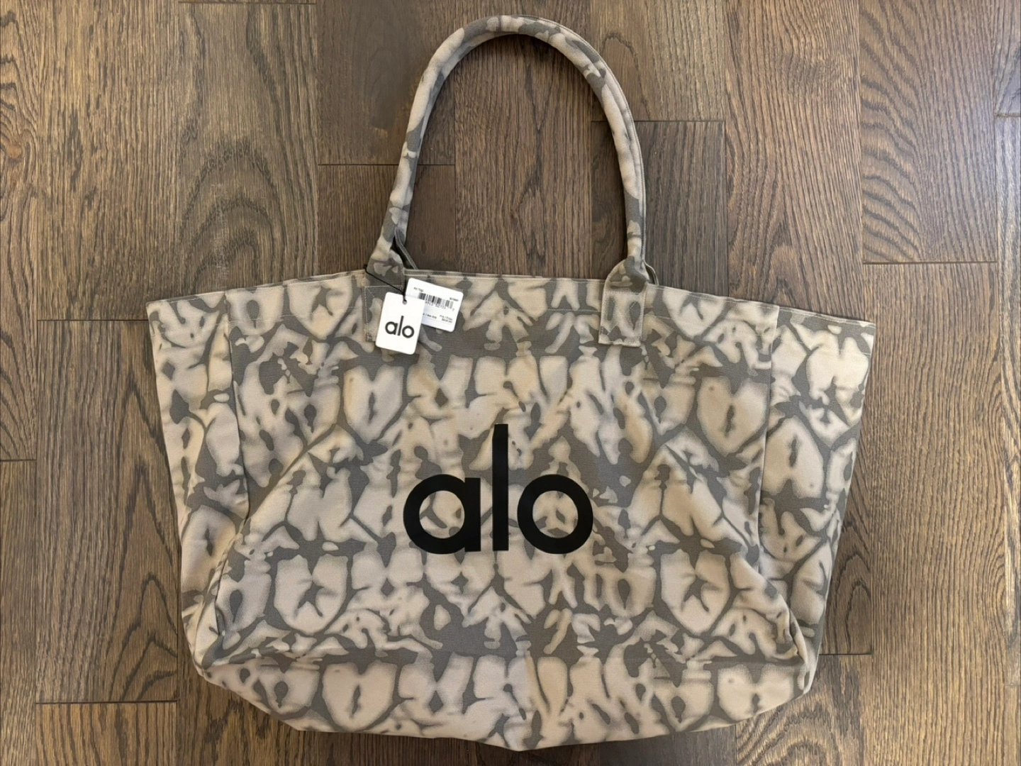 Carry-it-all in style with the Tie Dye Shopper. This perfectly oversized, heavy-duty canvas bag features corded handles, an Alo Yoga logo, and a gorgeous grey tie-dye pattern.