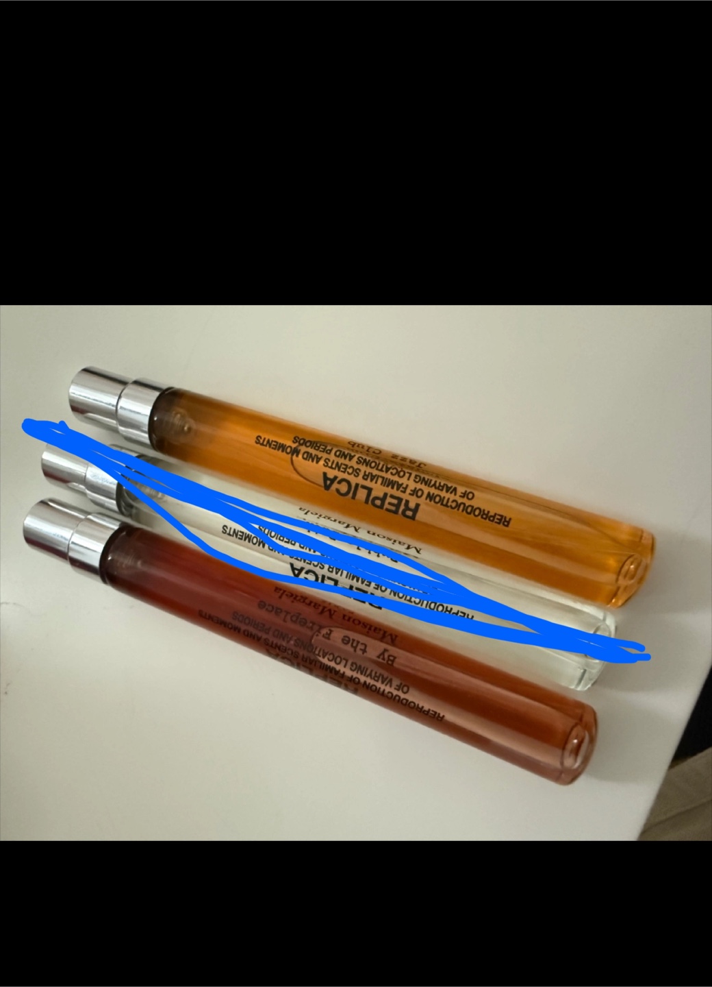 Three different REPLICA brand perfume scents. A great way to discover new scents.