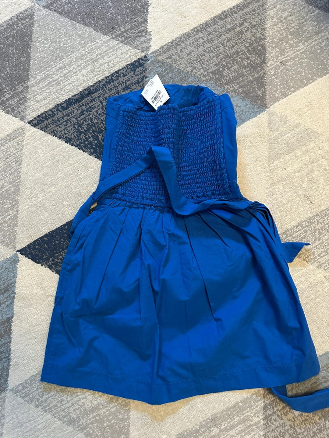 A lovely blue dress. Features a bandeau top. Includes a fabric belt. Perfect for a walk in the park on a nice day.