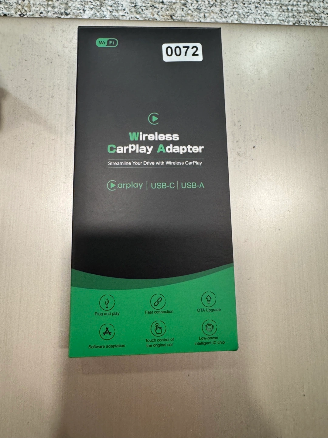 Wireless CarPlay adapter. Designed for a fast connection. Software adaptation and OTA upgrade capabilities. A great item to upgrade your car's tech experience in a comfortable way.