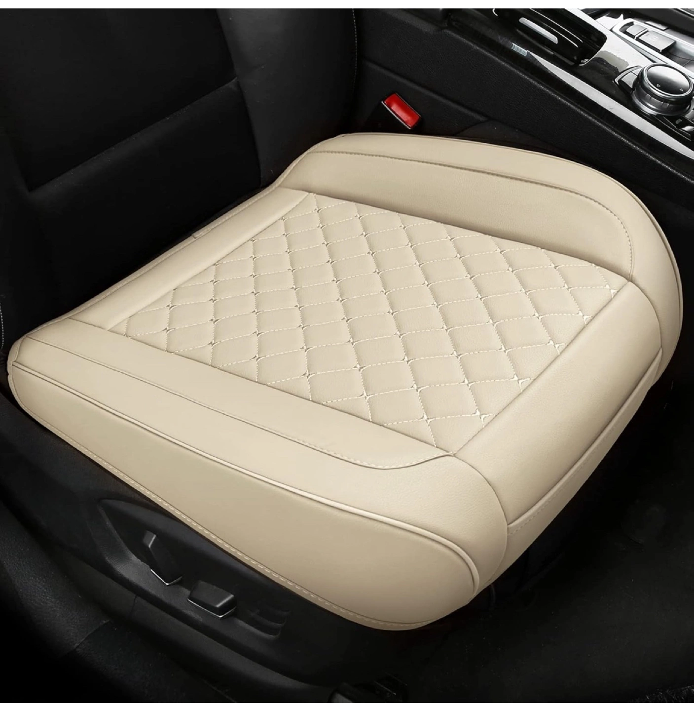 This seat cushion features a stylish design with quilted detailing. The cushion is made from premium PU leather and has a non-slip backing, ensuring it stays in place. I find it would be perfect to install in a car to improve the overall comfort of your driving experience.