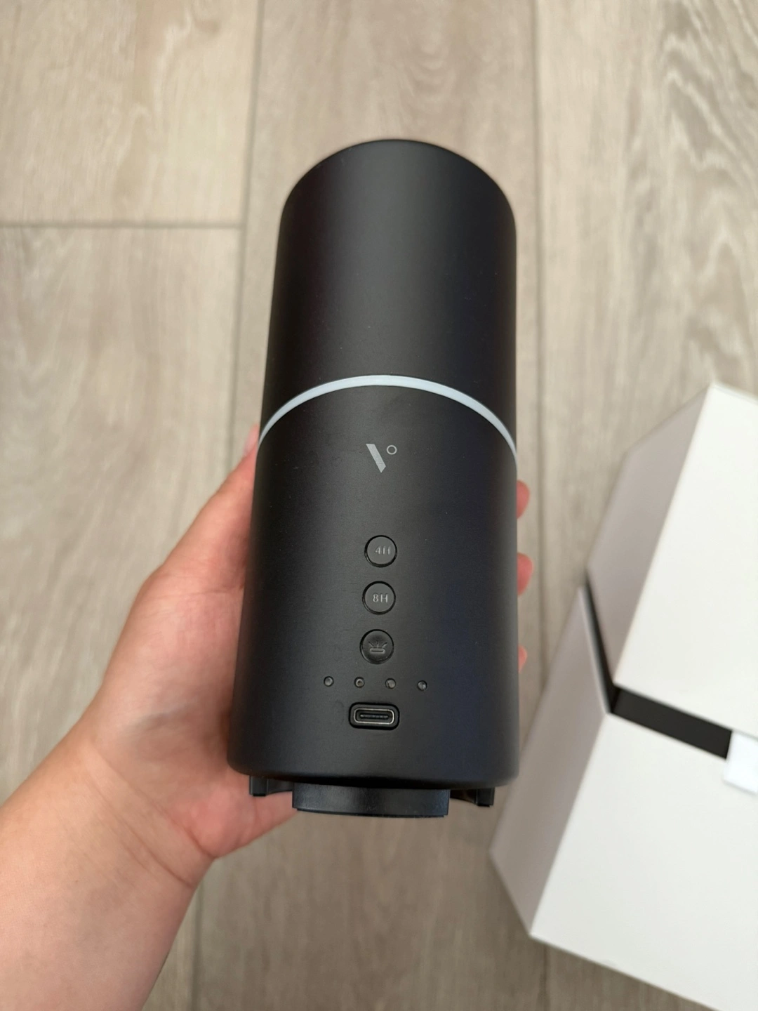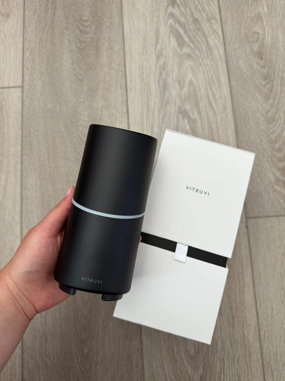 Vitruvi diffuser in black. Used less than 5 times. Works in perfect condition. Comes with all original accessories. Can throw in some essential oils as well.