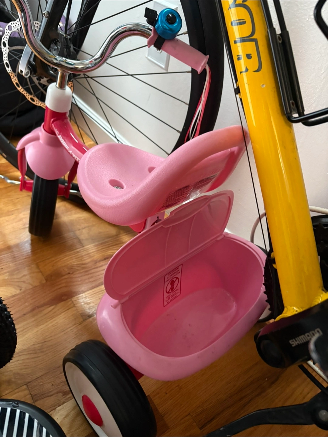 Adorable pink tricycle to help the kiddos learn to bike. Great first bike to practice on.