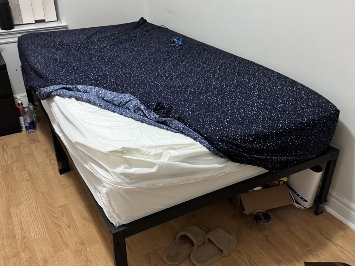 Twin size mattress (38” x 75”) with metal bed frame – Gently Used, Great Condition!