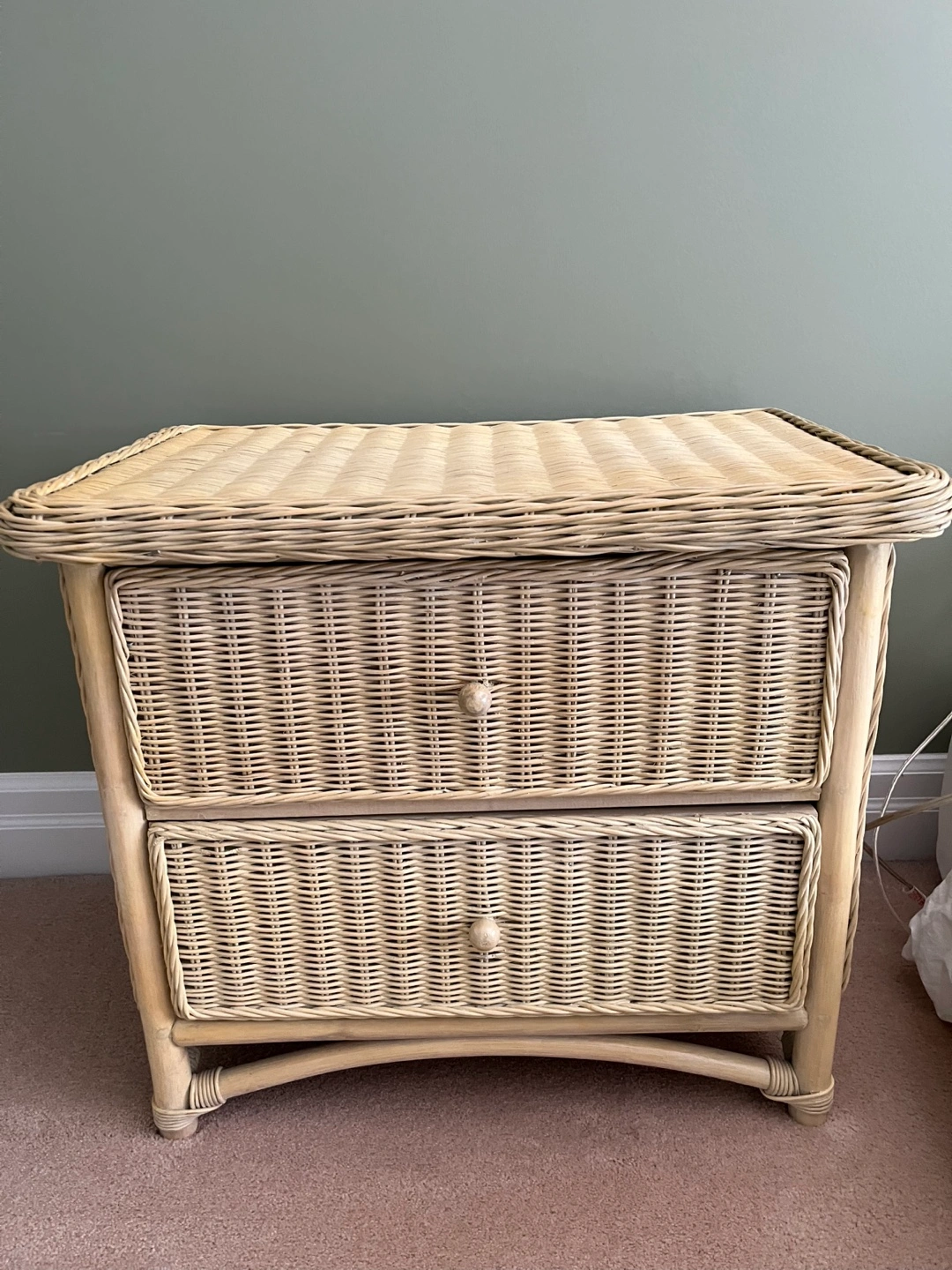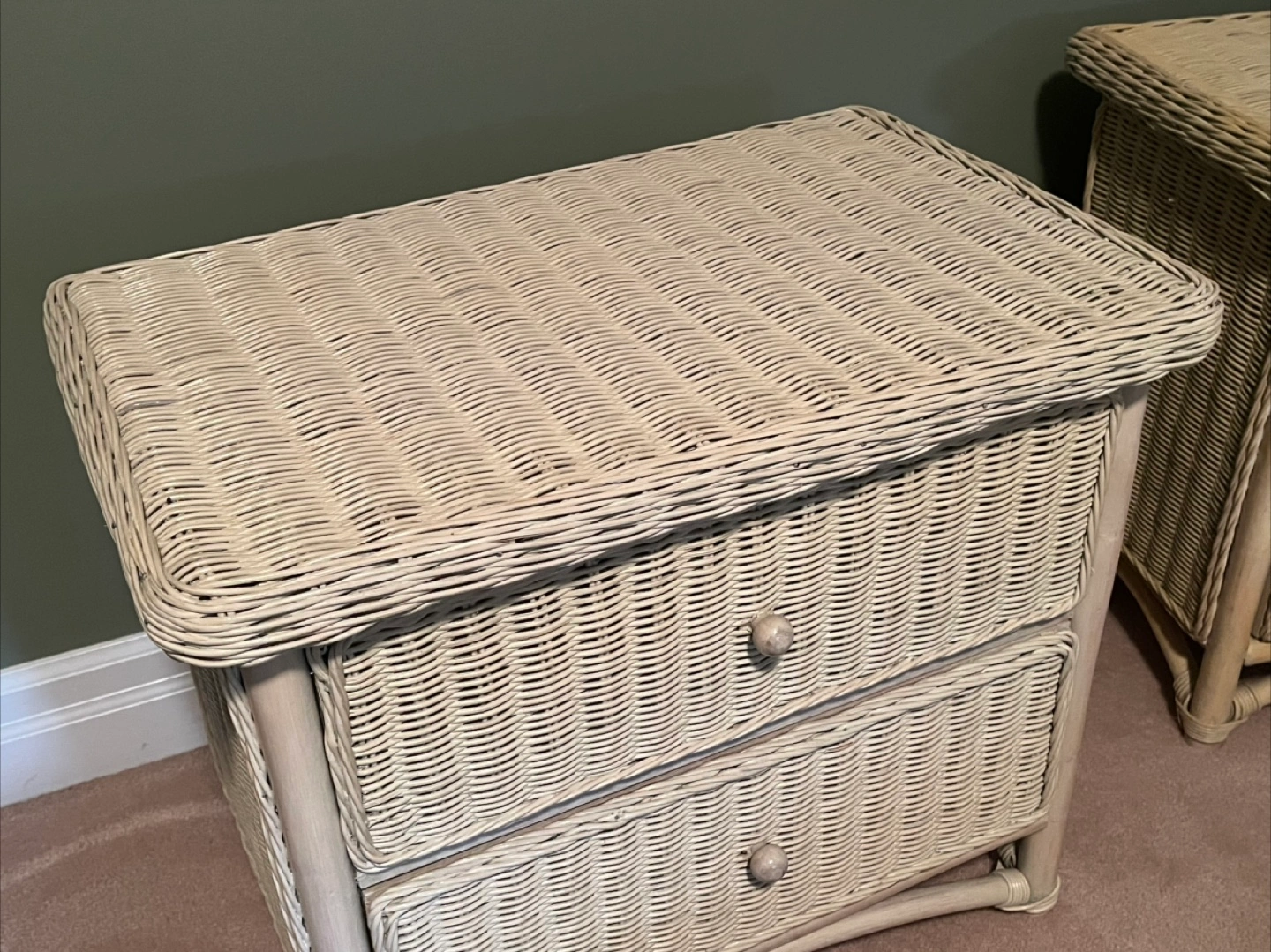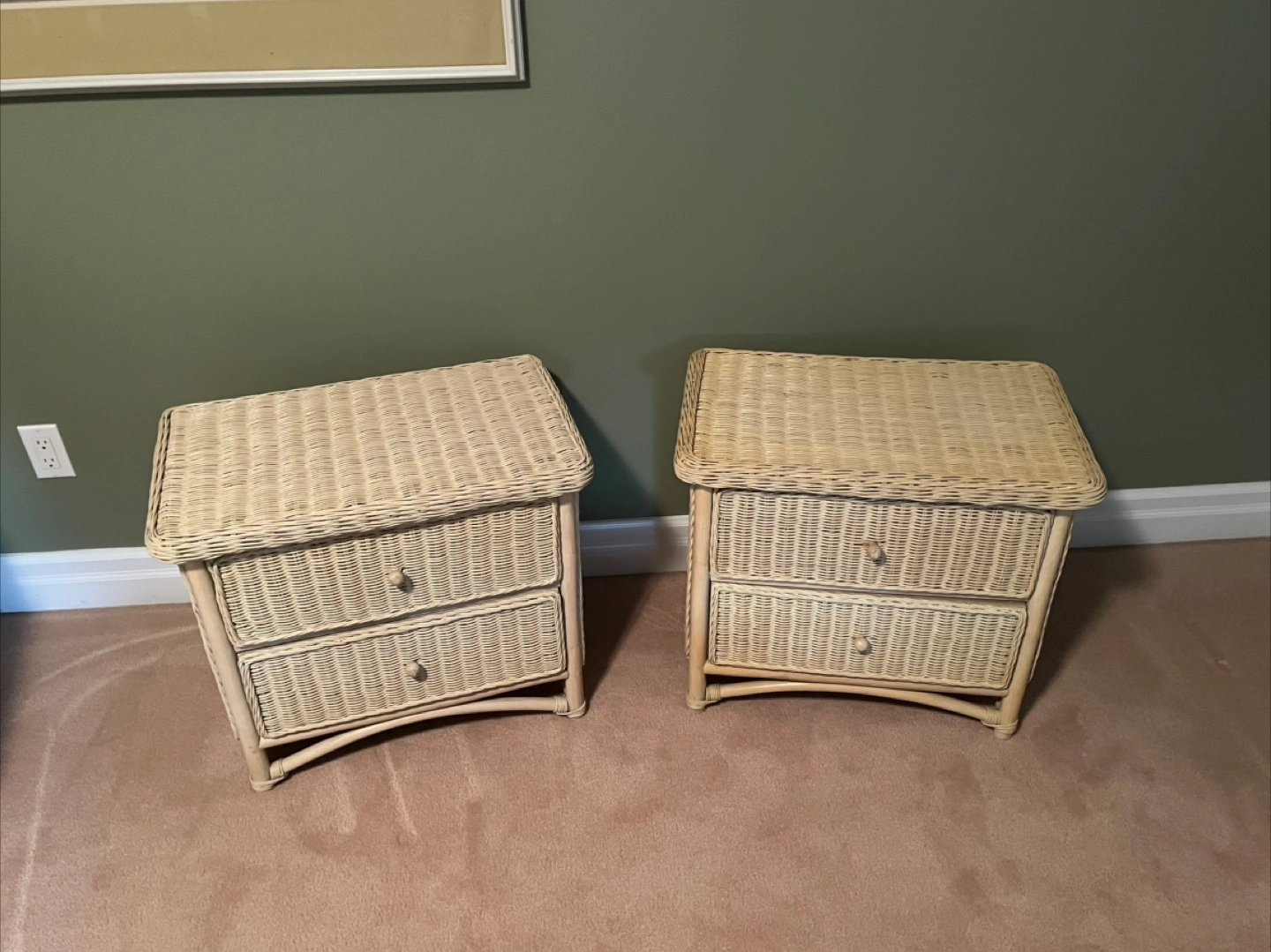 $50 PRICE for BOTH- pair of 2 rattan nightstands. Great for stashing all your nighttime essentials to help keep your space tidy.