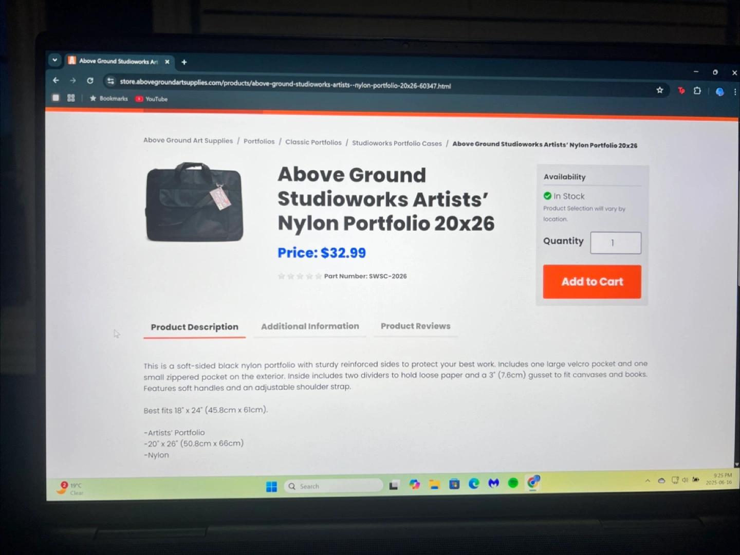 Above Ground Studioworks Artists’ Nylon Portfolio 20x26 (Brand New, Never Used, No Damage)